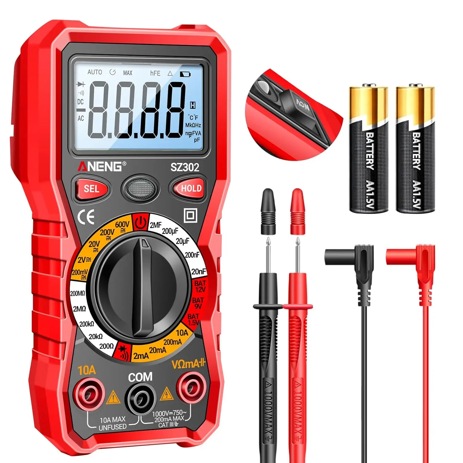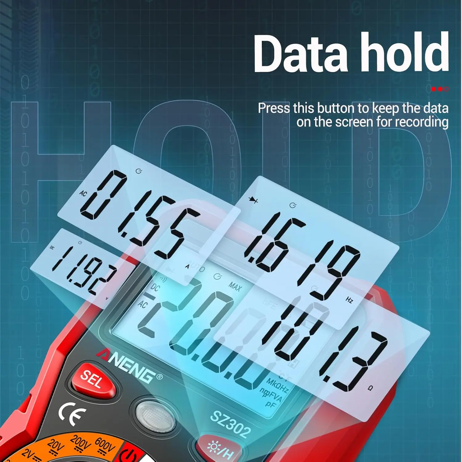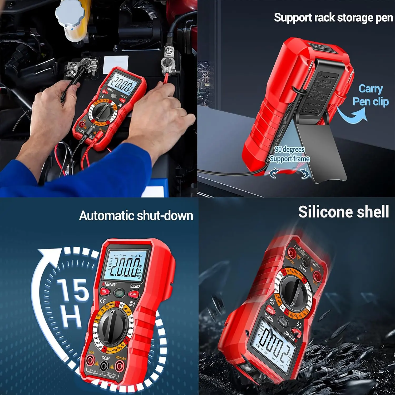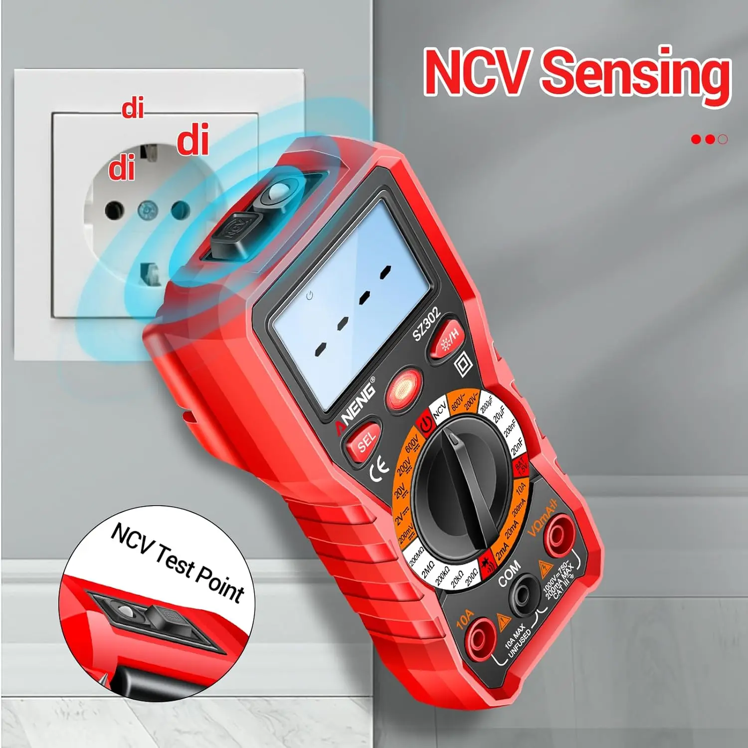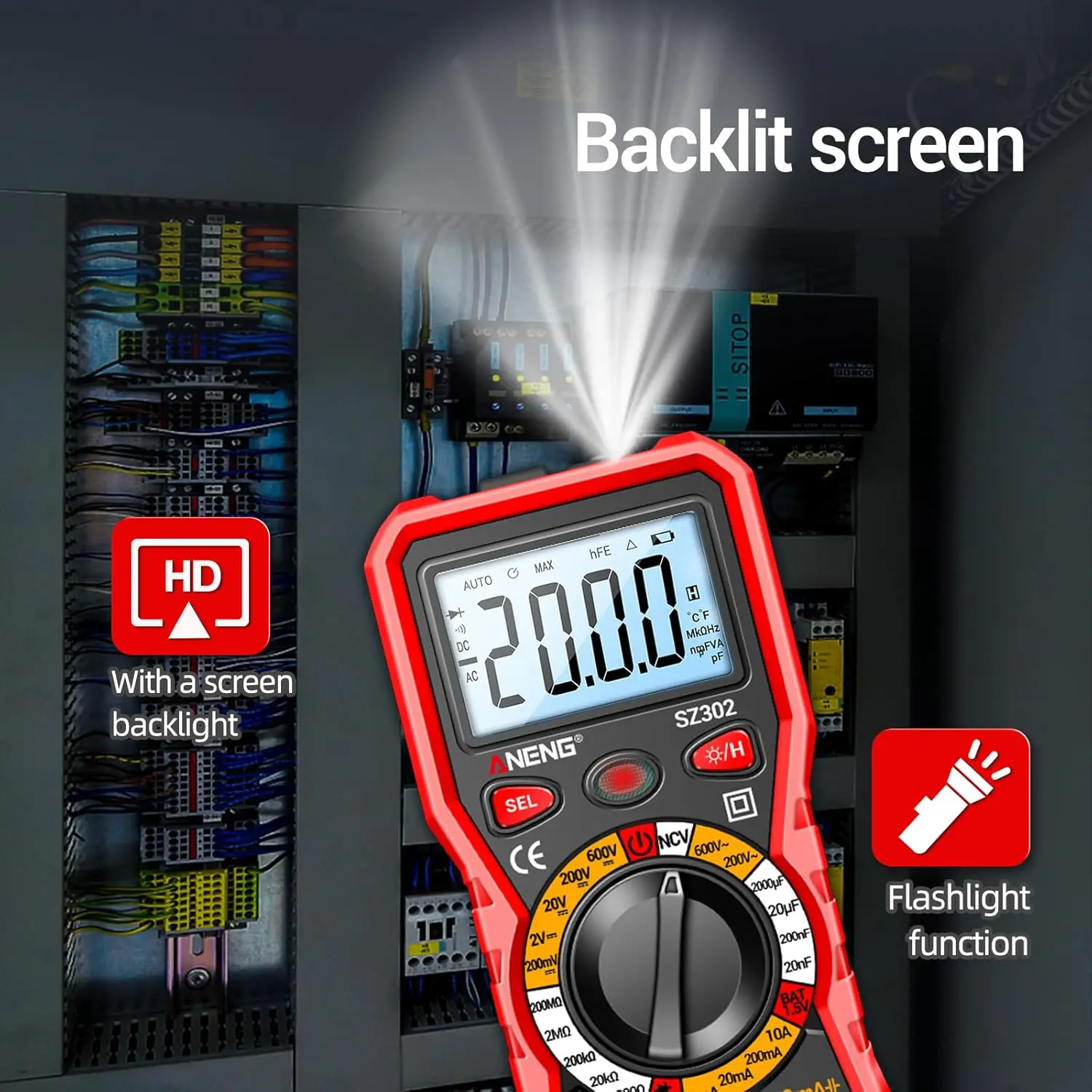 ·Versatility:ANENG SZ302 multi meter with backlit screen is a highly adaptable electronic tool that can be used to measure a wide range of electrical properties,including AC/DC voltage,current,NCV,resistance,continuity,diode,data hold and Live wire.This makes it an essential tool for anyone working with electronics or electrical systems,also widely used by hobbyists,students,and professionals in various fields,including engineering,automotive repair,and electricians