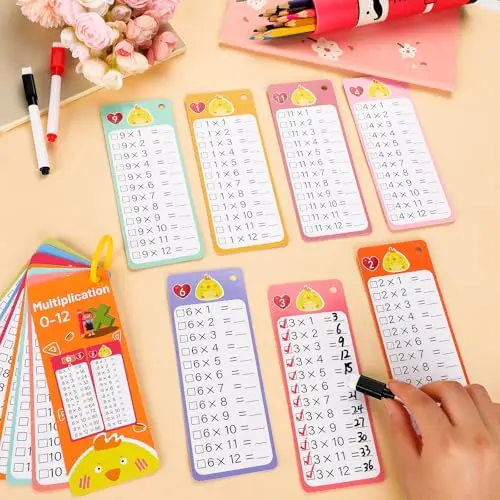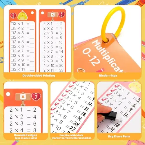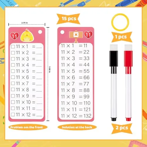 Learning Multiplication Tool: You will get 15 multiplication flash cards (0-12), 2 black and red markers pen and 1 metal binder rings, help you enjoy in fun math games at home, classroom