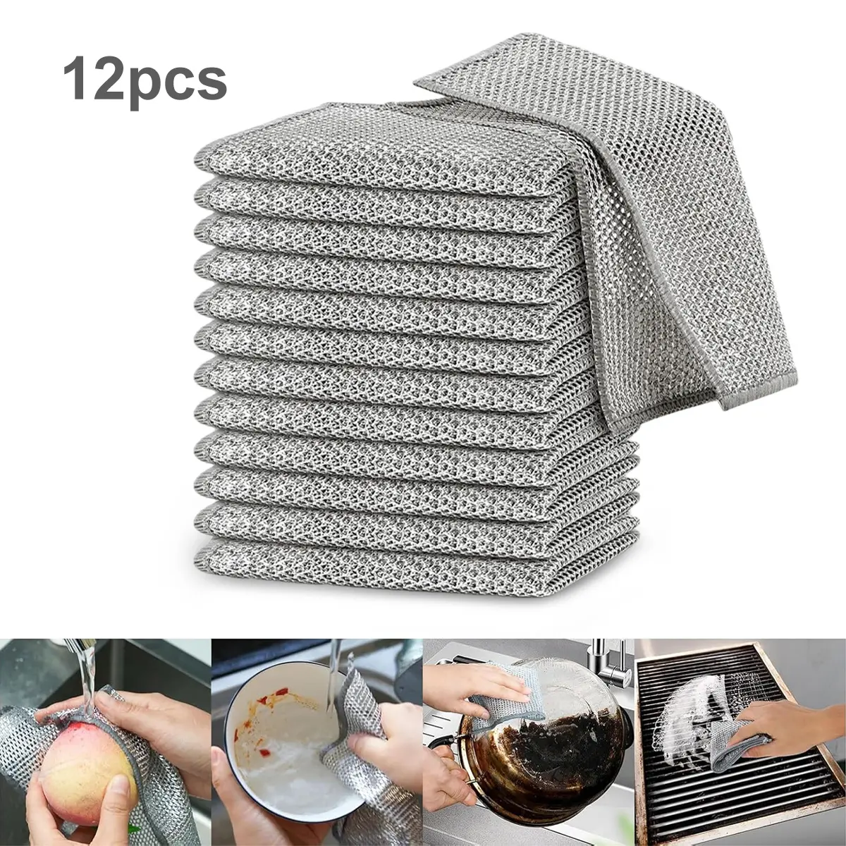 Ever struggled with stubborn grease or stuck-on food in your kitchen? Our 12-pack stainless steel scrubbers are here to save your day! Crafted from durable metallic fibers, these non-scratch cleaning cloths power through grime while keeping your dishes and cookware safe. Whether you’re scrubbing pots, pans, or even fresh fruits and veggies, their unique double-layer wire mesh design boosts cleaning efficiency without scratching surfaces. Plus, they foam up quickly for an easier clean and are dishwasher safe for simple upkeep. Each pack includes 12 reusable cloths, so you’ll always have a fresh scrubber ready for any mess. Say goodbye to disposable sponges and hello to a reliable, eco-friendly cleaning companion. Ready to make your kitchen sparkle? Grab your pack today and tackle those tough cleaning jobs with ease!
