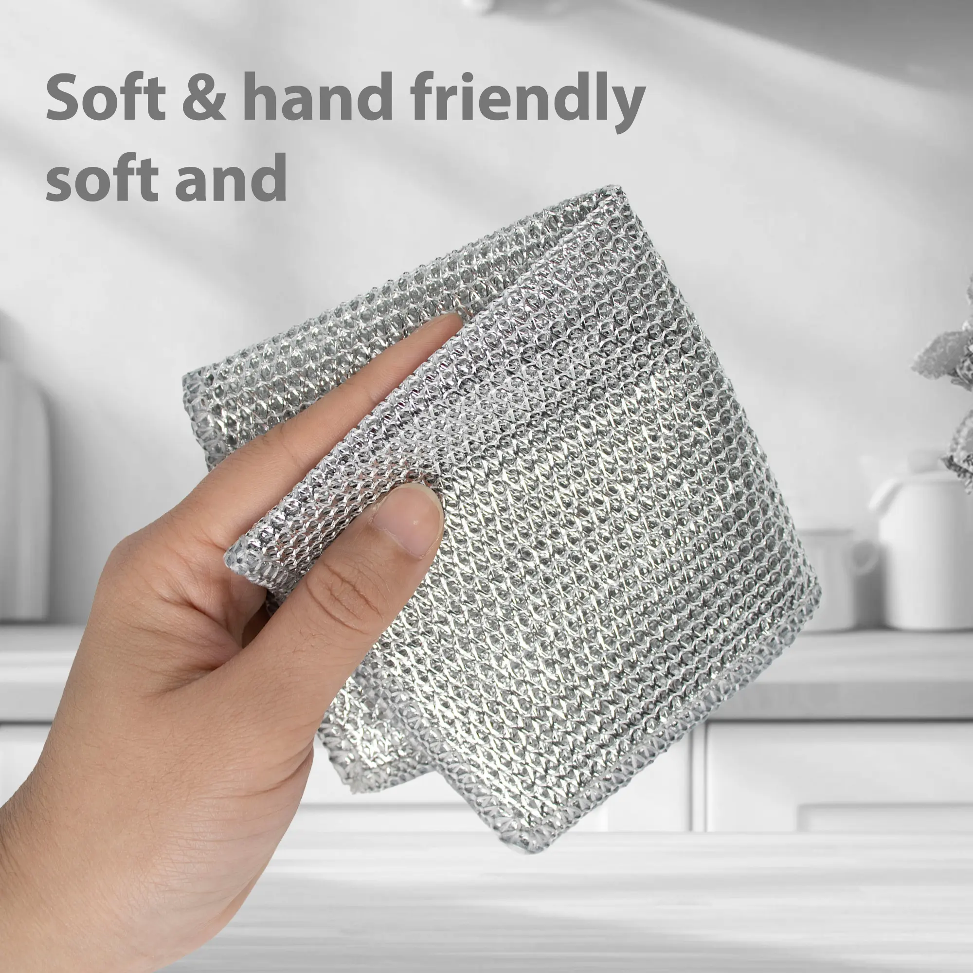 Non-Scratch - The wire dishwashing rag features wire structure, can effectively removes food residue and stubborn stains. The fiber material will absorb moisture and grease without hurting your hands and cookware, making the cleaning process more efficient