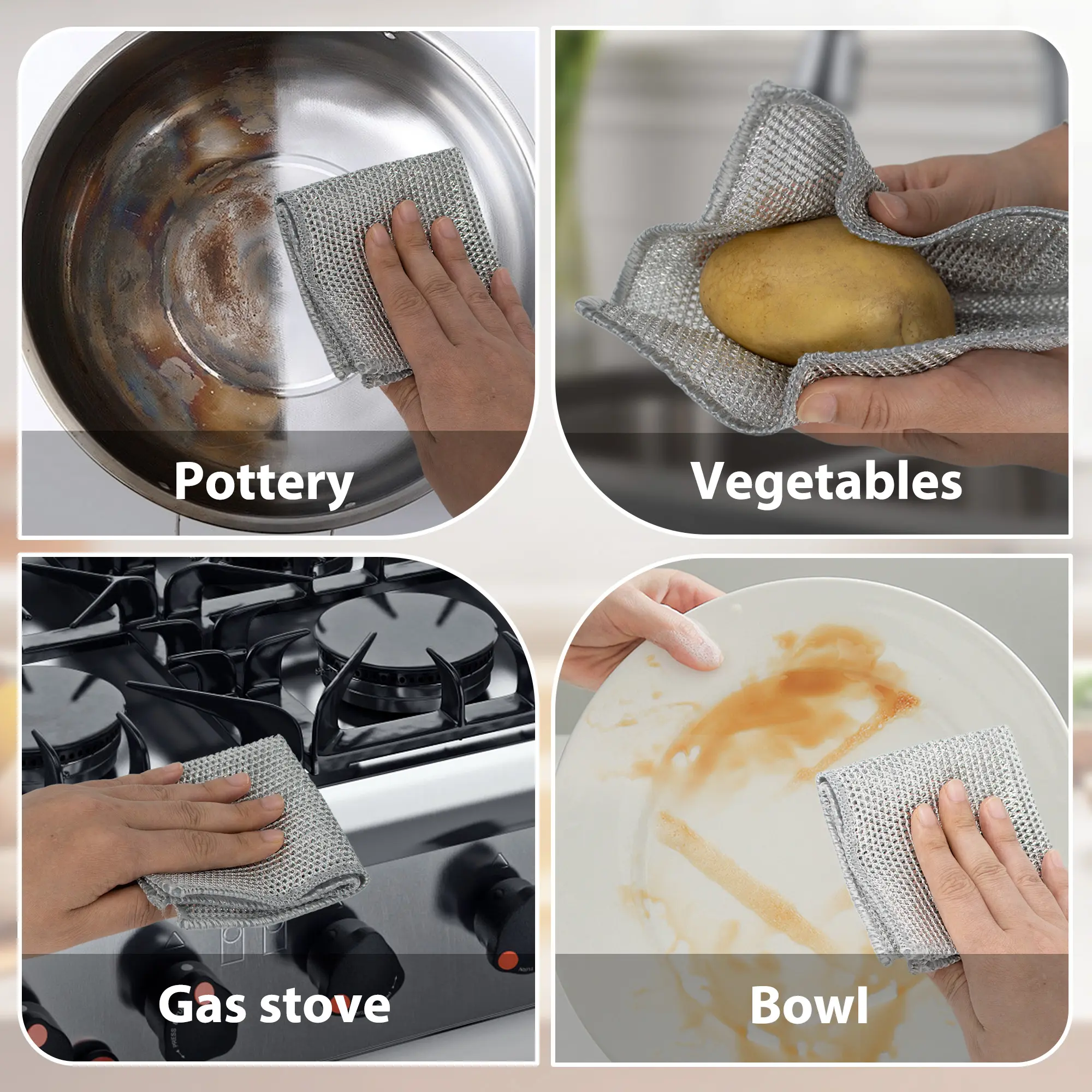 Strong Cleaning - These multipurpose wire dishwashing rags feature very strong cleaning ability, and it is reusable, easy to remove grease, highly absorbent, non-scratch and fast drying, safe to use on all kitchen surfaces