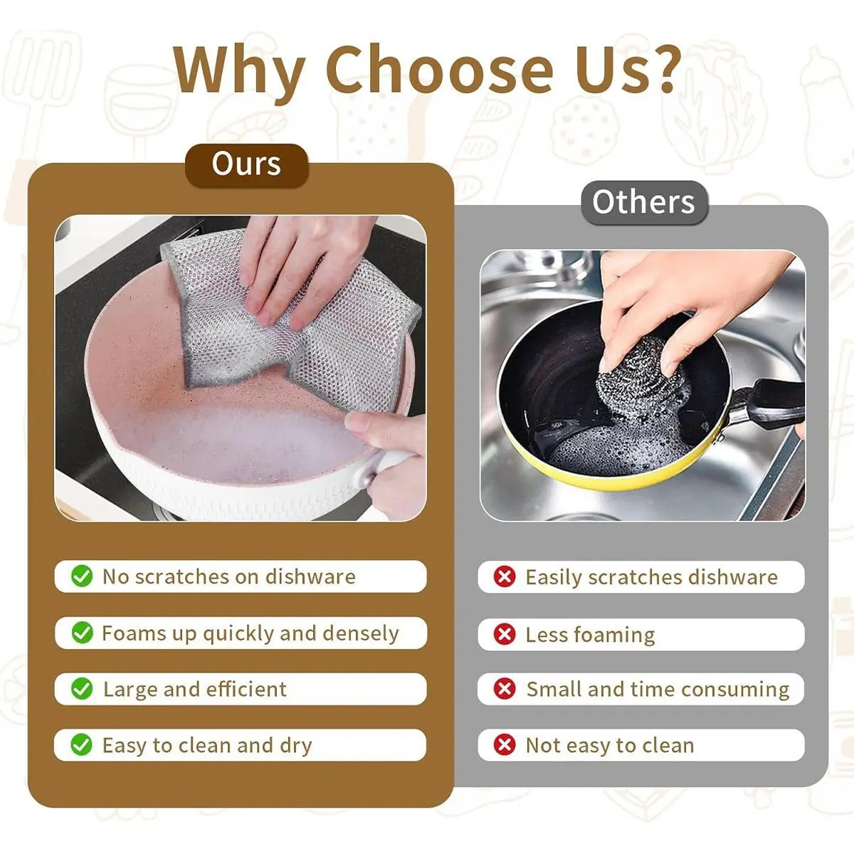 【Widely Used】All-purpose Wire Dishwashing Rag is durable and reusable and can be used to wipe kitchenware, dishes, pots, pans, countertops, cook tops, grills, stoves etc.