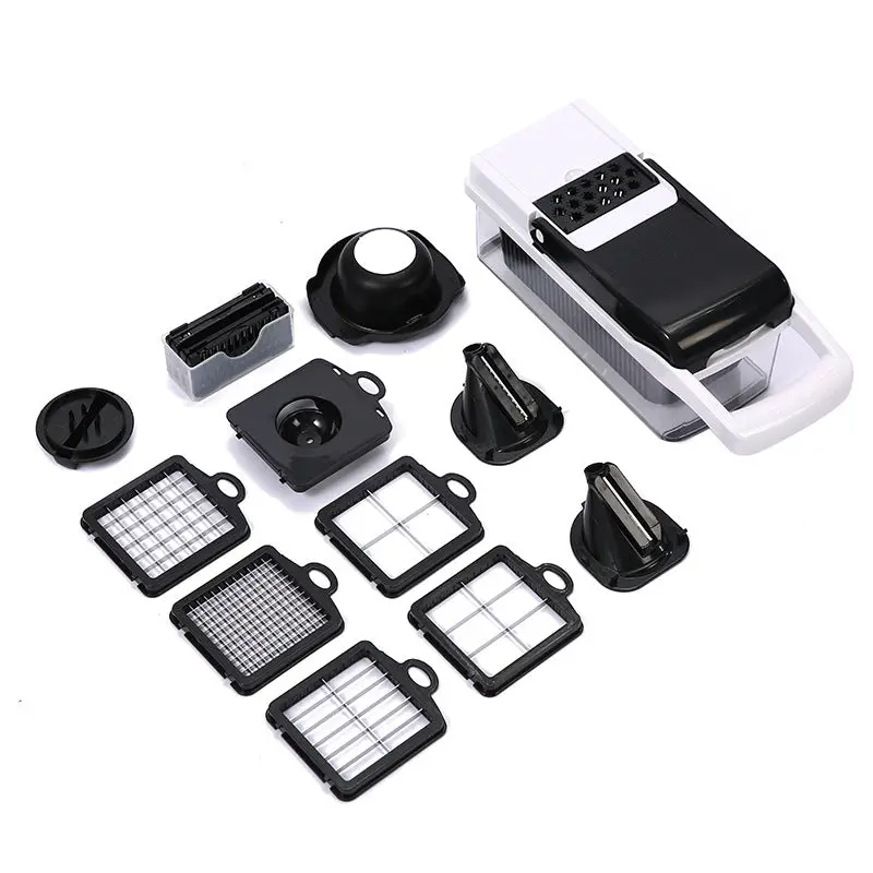 Vegetable cutter body + 7 blades + drain basket + cleaning brush + hand guard + blade box * 1