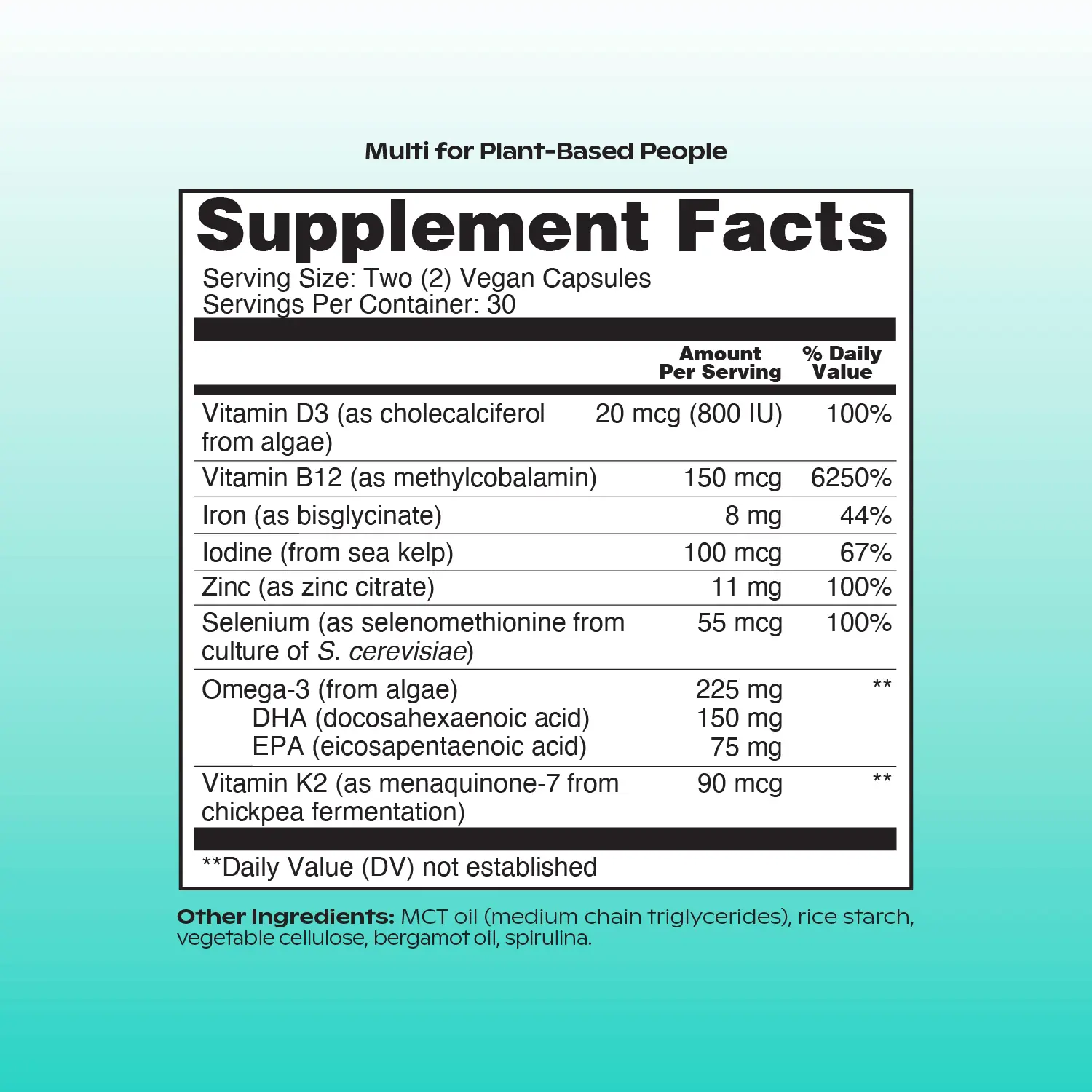 The science-backed, vegan multivitamin made with food-based vitamins, minerals and omega-3s and designed to fill in the nutrient gaps for vegans, vegetarians and plant-based people. Each daily dose is infused with a delicious citrus flavor.