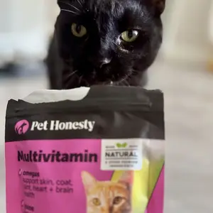 Pet Honesty’s Multivitamin for cats is a delicious, dual-textured cat supplement. It contains essential vitamins, minerals, and nutrients to support your cat’s overall health. Powerful ingredients like Lysine, Beta Glucan, and Omega-3s work together to offer effective support for your cat’s health. Packaged in 36% post-consumer recycled plastic, it’s gentle on the planet.