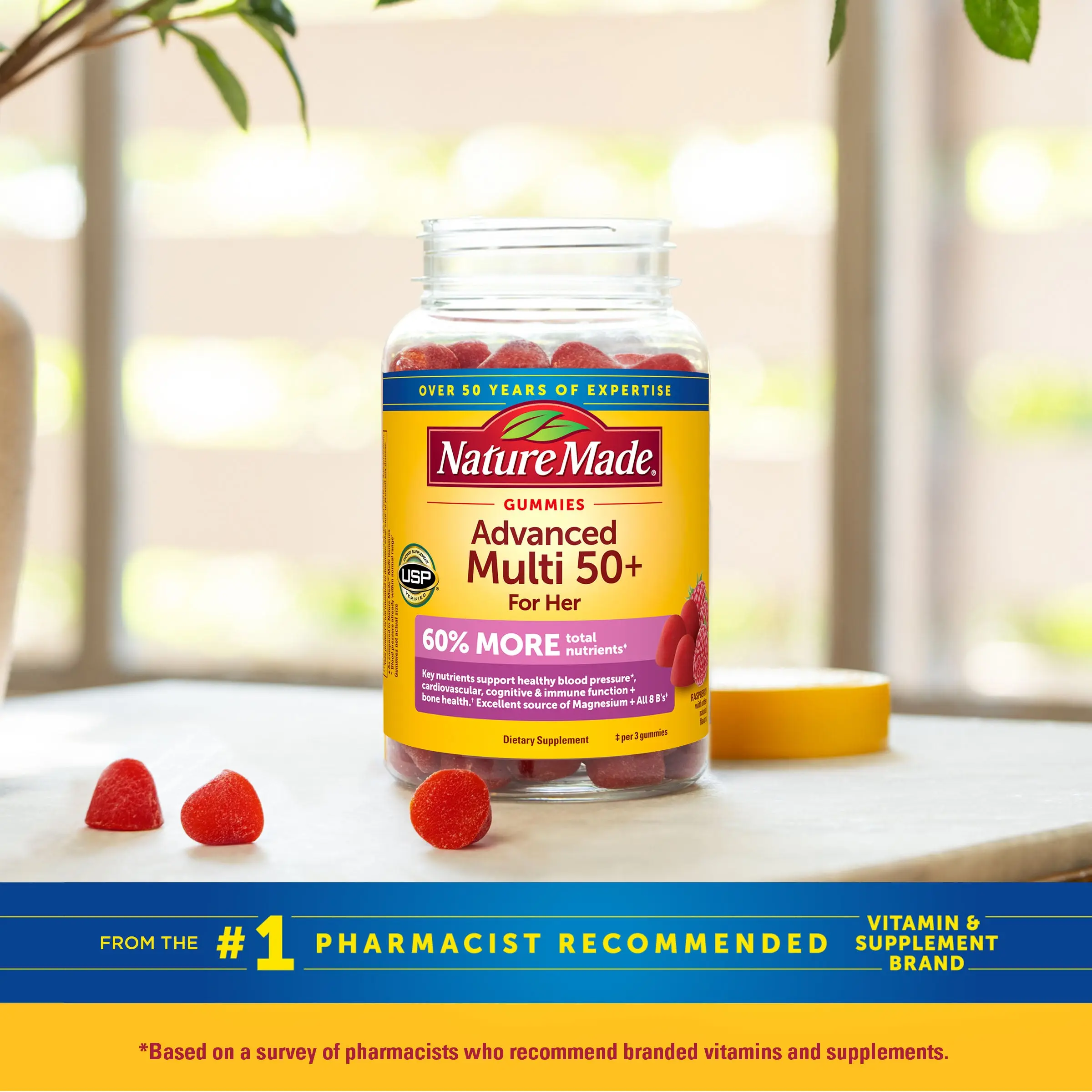 Get 60% more total nutrients◆ in 3 daily gummies, specially formulated for women 50 years and older.