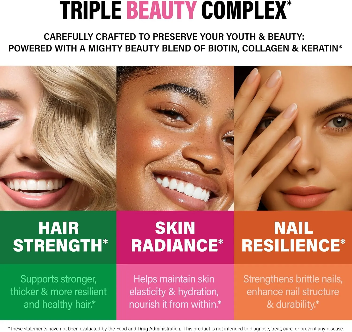 ·Beauty Complex — reveal your natural beauty with our potent blend of Biotin, Collagen & Keratin in women’s multivitamin! It nourishes your beauty from the inside out for a radiant, healthy glow every day!
