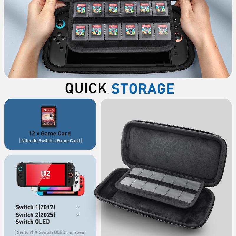 Designed specifically for the Switch 2 Mini, this portable bag fits your console with attached Joy-Cons snugly inside a shockproof, water-resistant EVA shell. It’s got 12 slots for your game cards and extra compartments for all those little accessories (charging cables, earbuds, you name it). Thanks to the soft, super scratch-resistant interior lining and extra padding, your gear stays protected from bumps, drops, and everyday wear and tear.