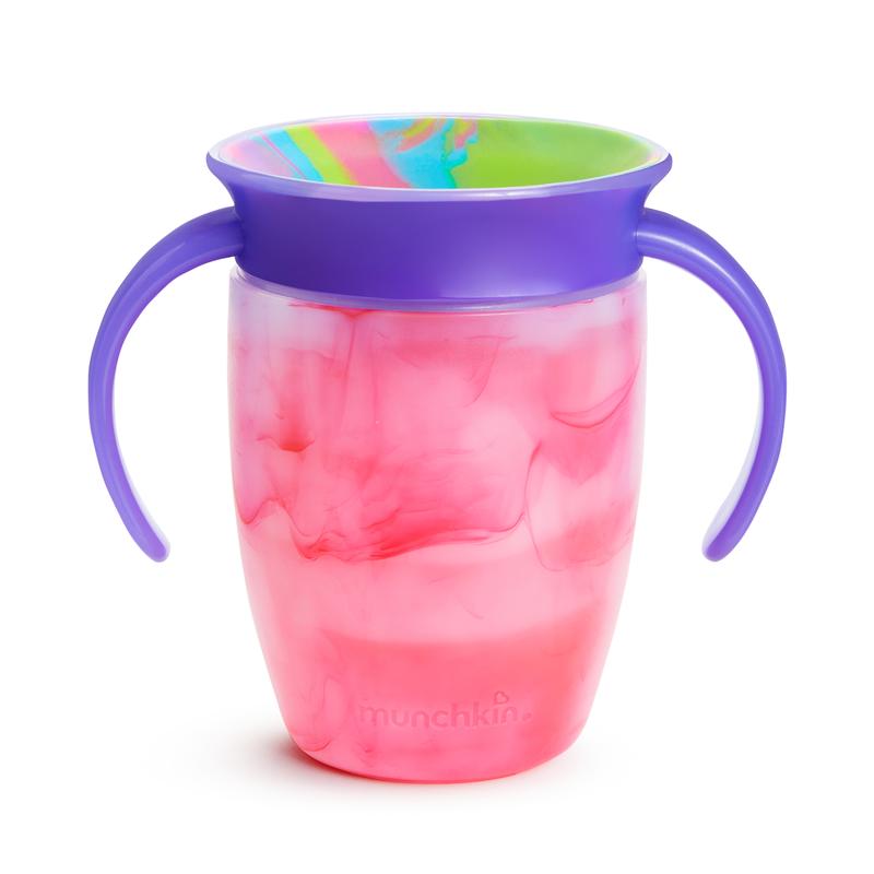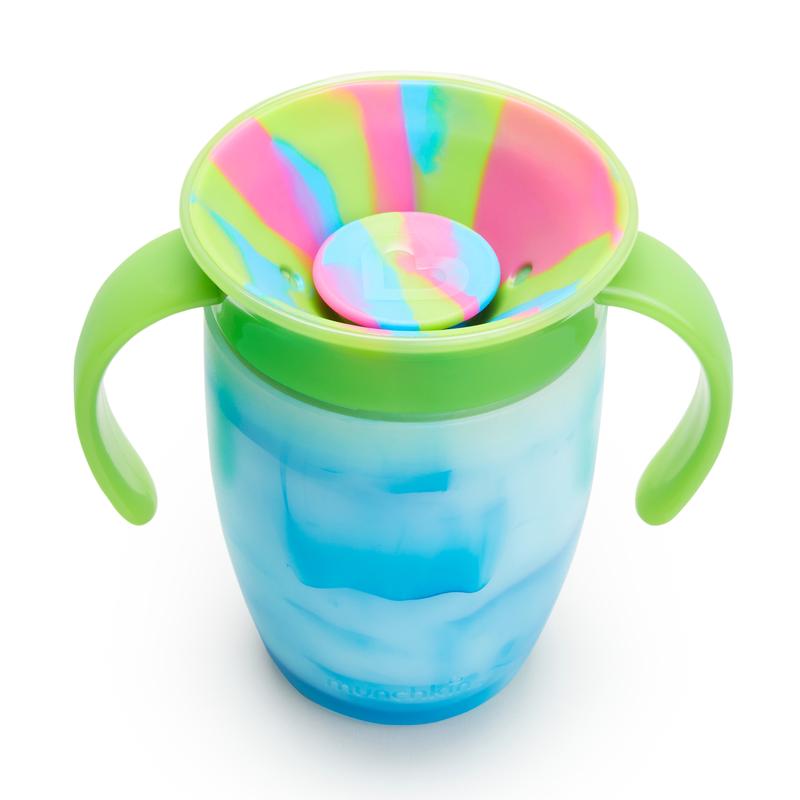 Introducing the Munchkin Miracle 360° Tie Dye Trainer Cup, a limited-edition toddler training cup designed to make sipping easier for your little one.