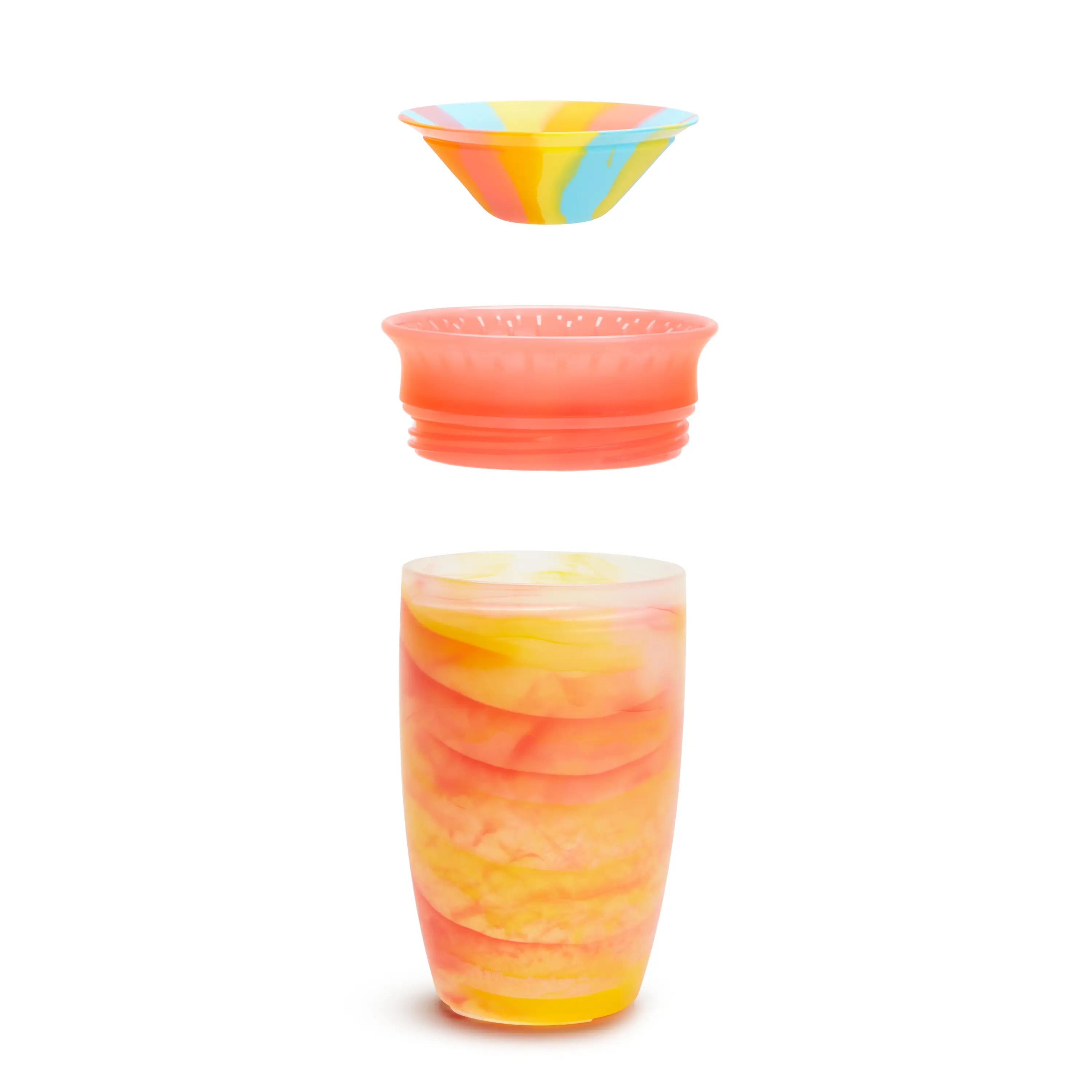 Say hello to a delightful twist on our best-selling Miracle 360° Sippy Cup! The new Tropical Swirl Miracle 360° collection features fun colors and beautifully marbled designs. Capturing the carefree spirit of summer, this candy-colored sippy cup is a sweet treat for little hands and mouths! Toddlers are a messy bunch, no matter what. But there is a world where their sippy cups don’t spill—not on the kitchen floor, not in your diaper bag, and not even onto your thirsty child. It’s not a miracle, exactly; it’s our exclusive Tropical Swirl Miracle 360° Cup! The first toddler drinkware invented with both parents and kids in mind, the Miracle 360° collection eliminates messes and supports kids’ dental health at the same time. Drinking from anywhere around the rim, like a regular cup, helps support normal muscle development in a child’s mouth. And with no extra spouts, straws or pieces, the Miracle 360° Sippy Cup is easy to use and even easier to clean. Cheers to hassle-free hydration and swirly, summery cups your child will reach for all year long!