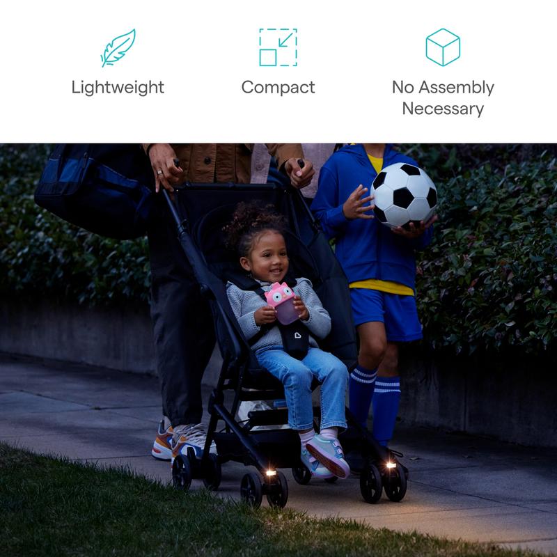 ·Lightweight travel stroller with one-touch lights for safer evening strolls