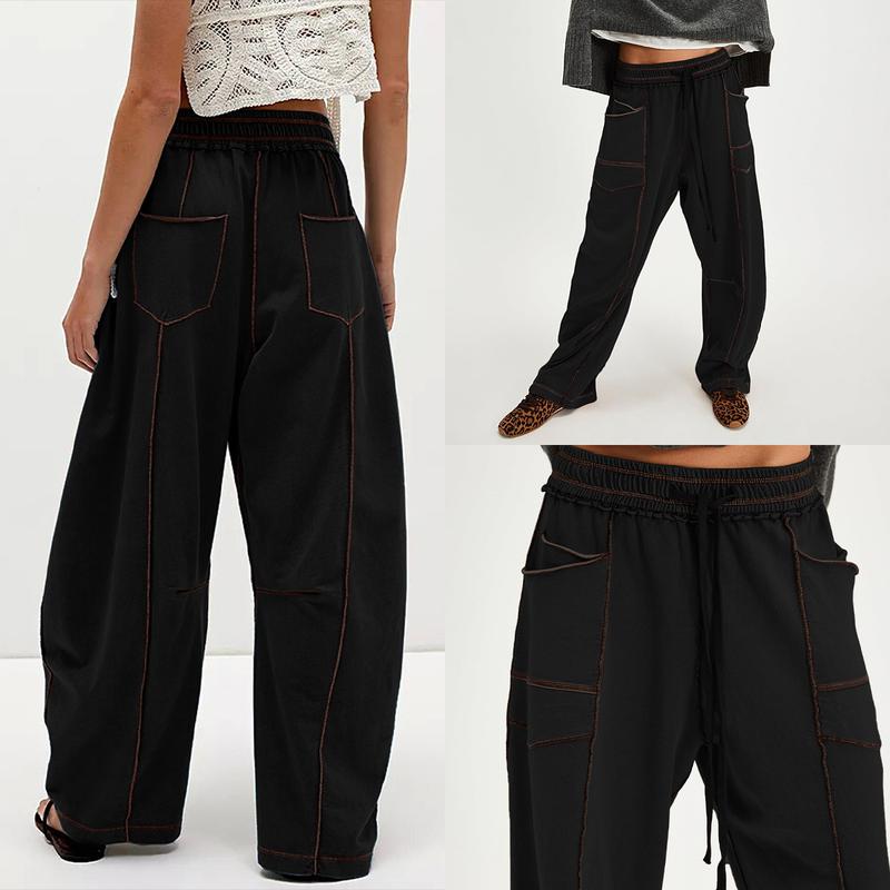 Size Guide-our wide leg pants woman fits true to size, if you want a model picture look, please order your normal wear Us size. If you want a more comfy loose fit for this barrel sweat pants women, suggest order one size up