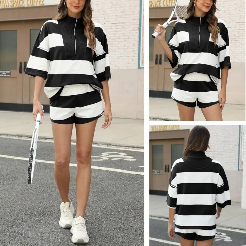 ·Match: The summer lounge sets for women striped can wear as matching sets women clothing summer or pair the oversized striped sets women 2 piece outfits with pants for fresh styles daily