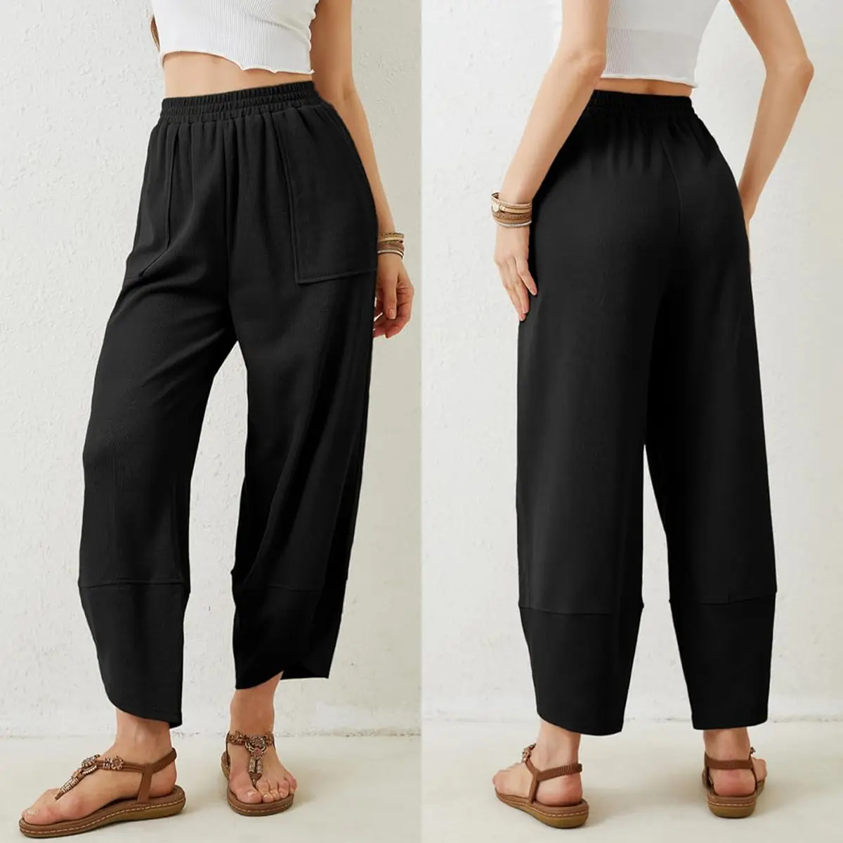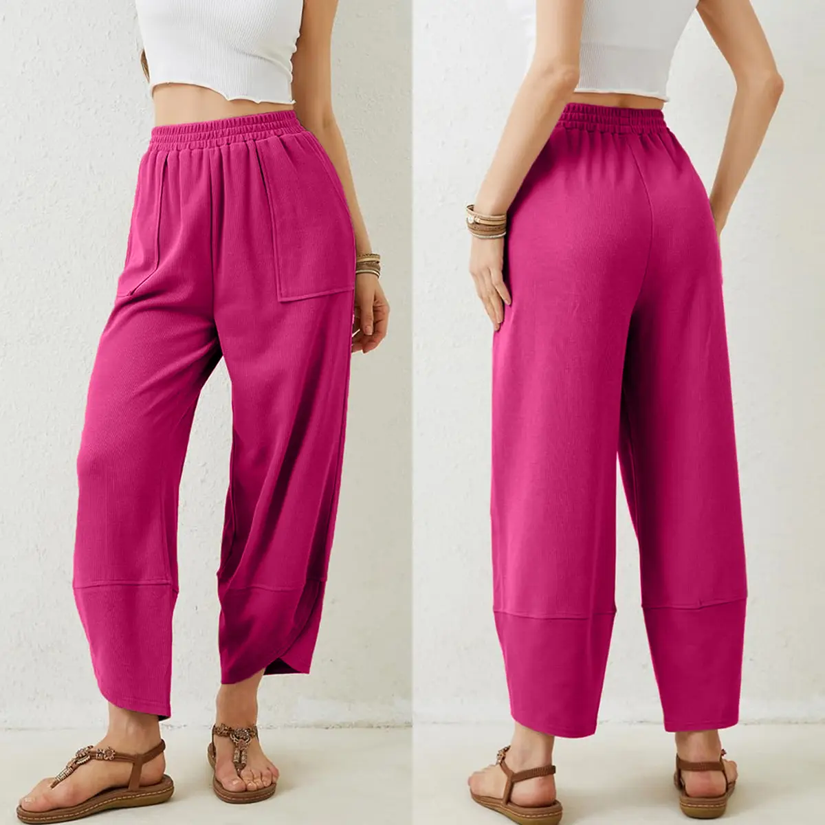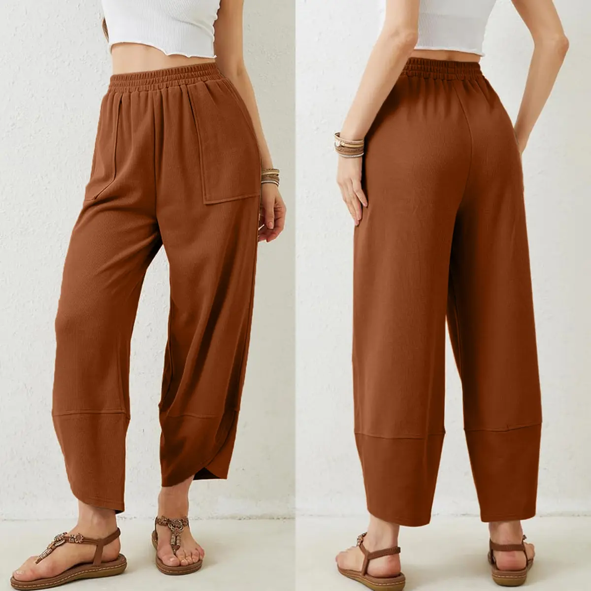 Versatile Style: Beachy and effortless, this cozy pants is featured in a slouchy, pull-on silhouette with curved hem detailing and smocked waistband for ease, perfect for pairing with crop top, vests, and shirts.