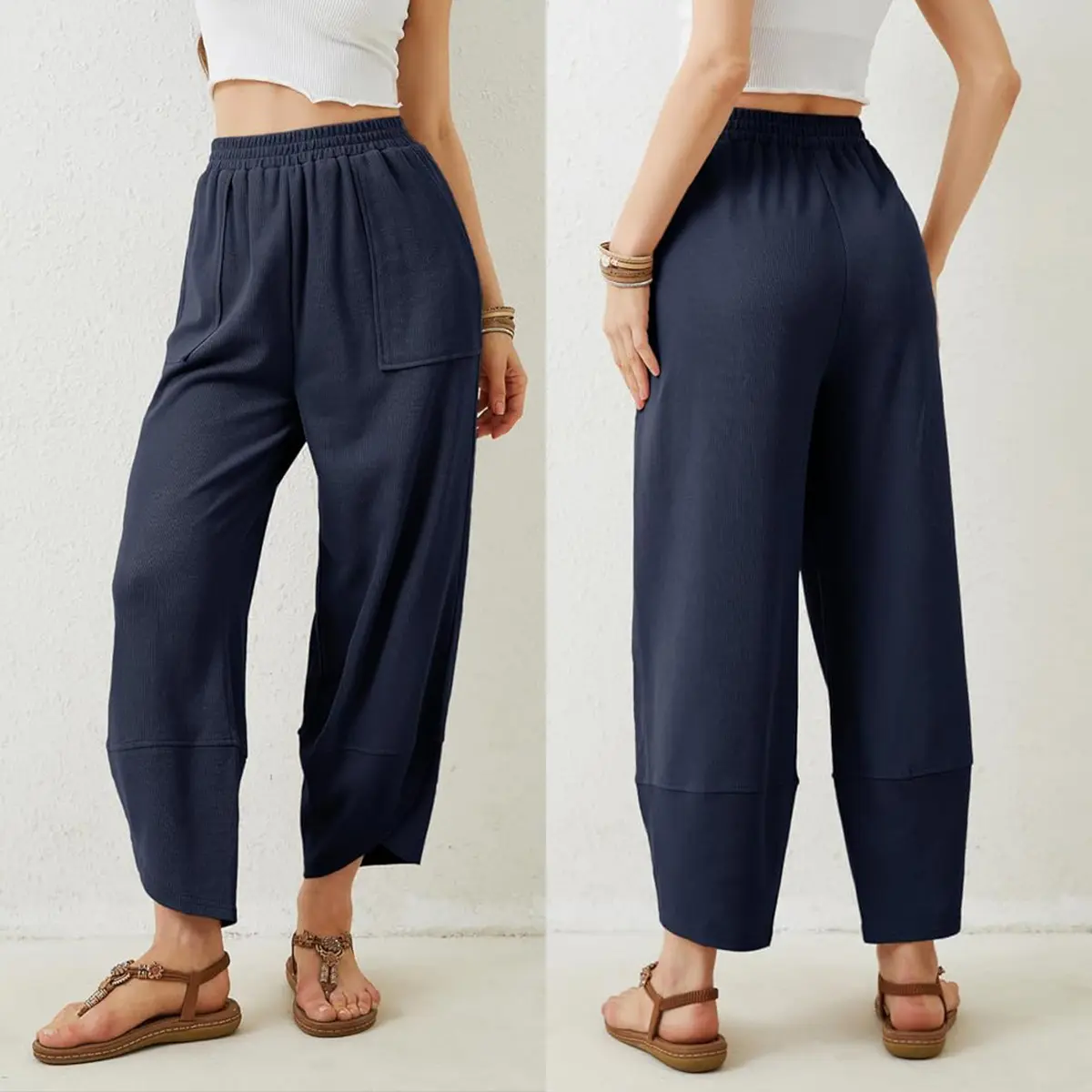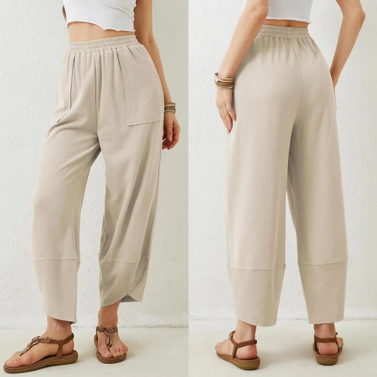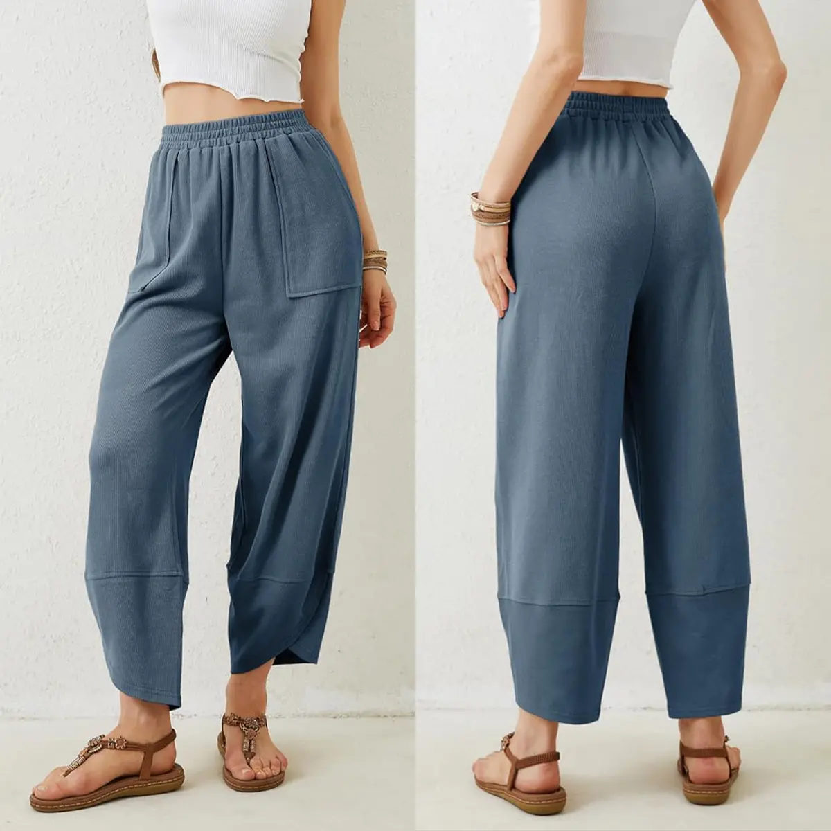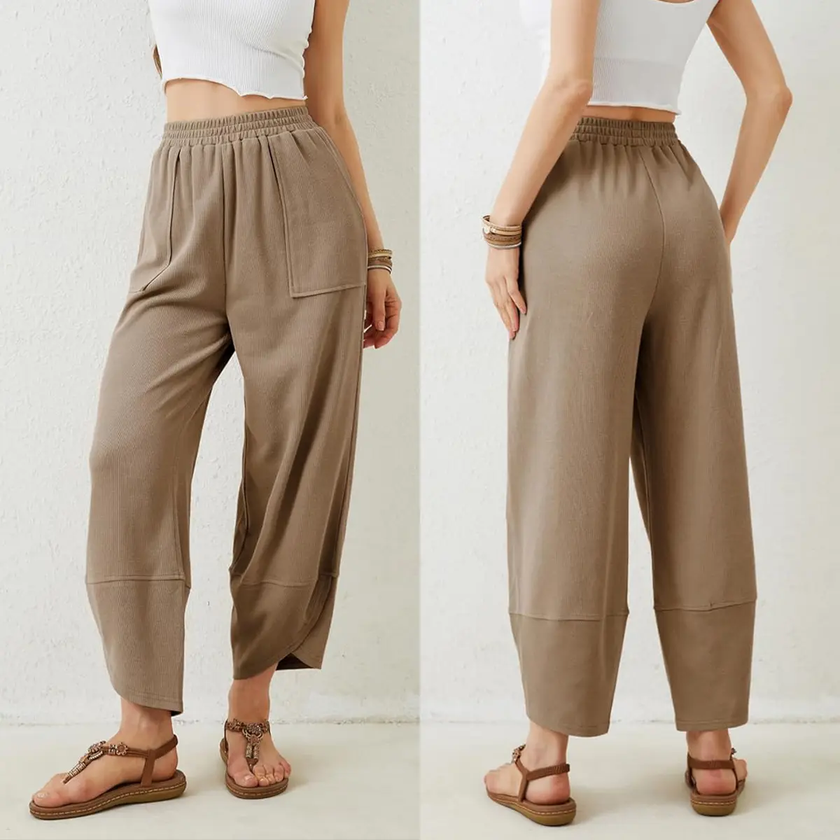 Versatile Style: Beachy and effortless, this cozy pants is featured in a slouchy, pull-on silhouette with curved hem detailing and smocked waistband for ease, perfect for pairing with crop top, vests, and shirts.