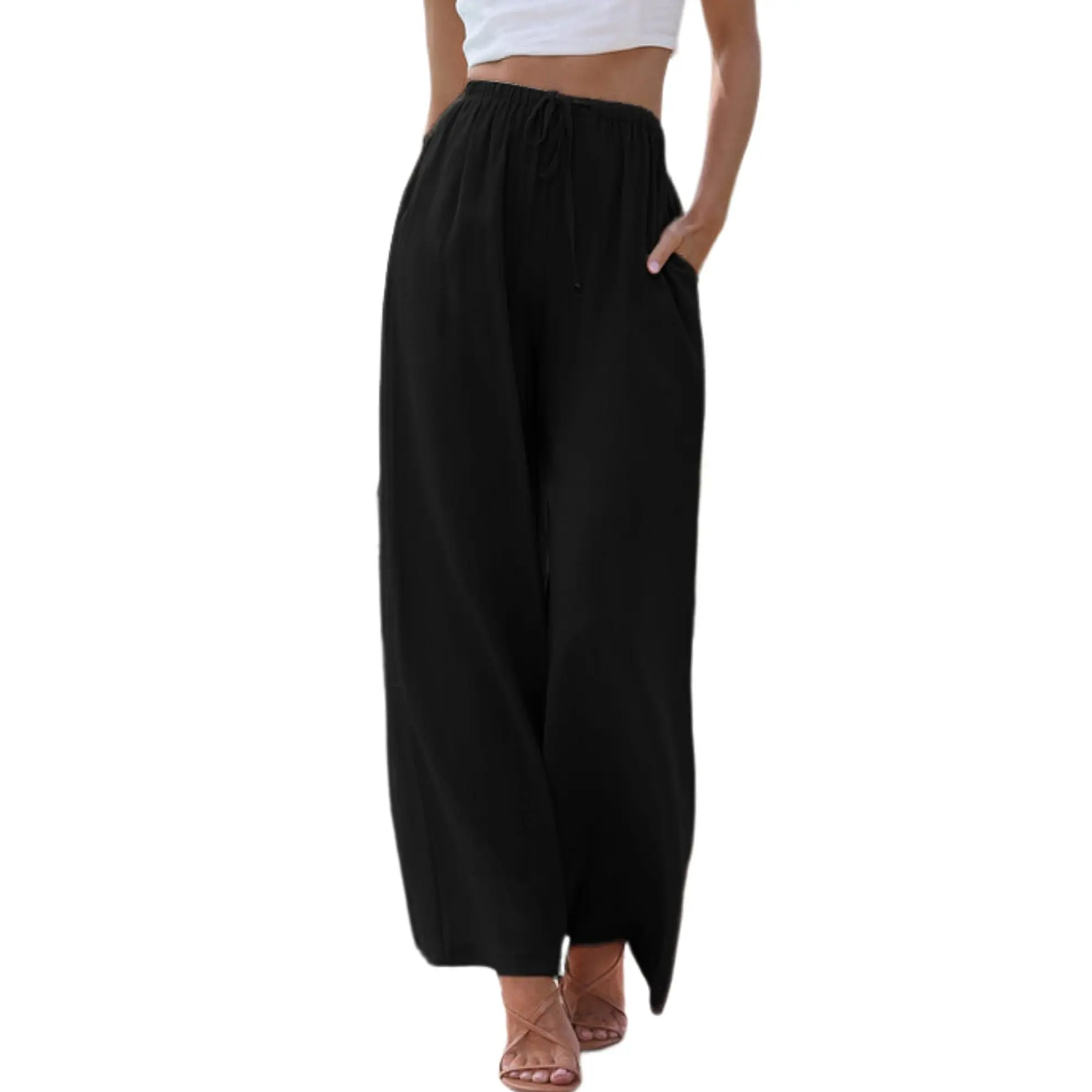 Wide leg, solid color, and elastic waist with drawstrings for women's summer palazzo pants