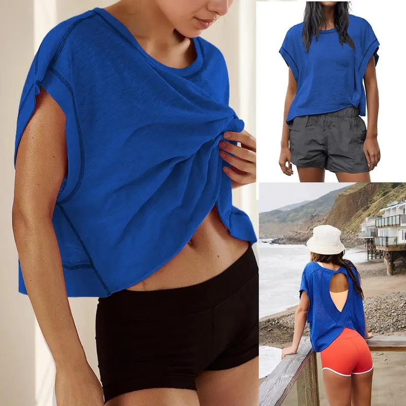 ·Features: Slight crop, shorter sides, wide neckline, open-cut back and ribbed wrist detail, the open back tops for women is fashionable and sexy, which increases the breathability, effectively dissipates body heat, and keeps cool and comfortable
