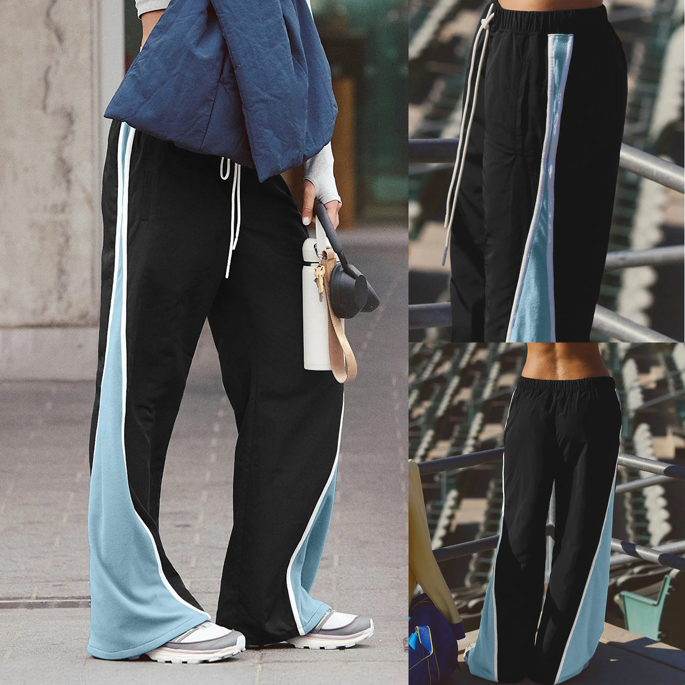 ·Features: These baggy pants women high waisted feature a wide-leg cut with an adjustable drawstring waistband, side pockets, and contrast color pipping detailing on the sides. Womens track pants with stripe create a stylish, urban streetwear look