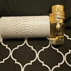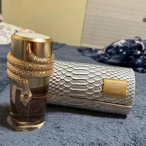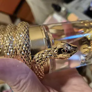 Gorgeous scent, longer lasting and the bottle, the case... Just insane. The snake has rhinestone eyes.