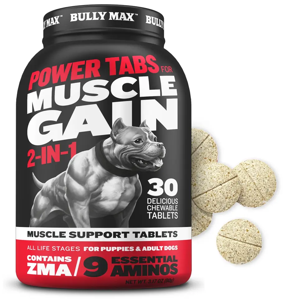 Bully Max Power Tabs are veterinarian-formulated to support healthy muscle growth, boost overall health and immunity, and aid in faster recovery after exercise. Designed for dogs of all breeds and sizes, this vitamin-packed supplement is perfect for pets recovering from injury, nursing, or simply looking to build strength and vitality.