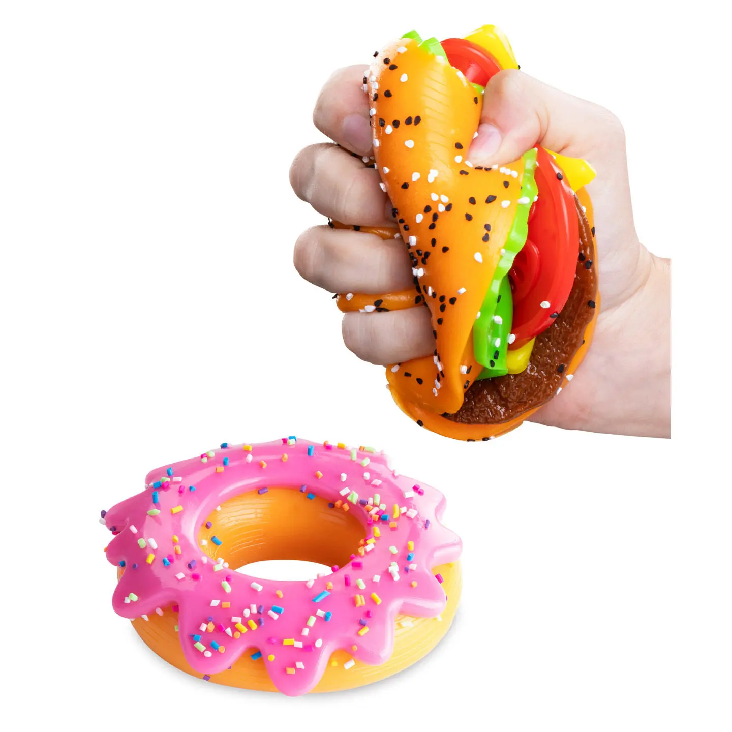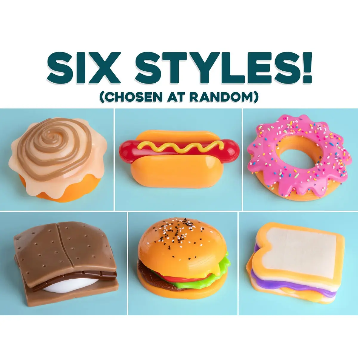 Each MushMeez is like multiple stress toys in one! Grab the hot dog out of the bun for an extra squeeze, fidget with each sprinkle on the donut, and even peel off the frosting swirl on the cinnamon roll. If you're into deconstructed dishes, the burger, s'more, and PB&J each have multiple layers to take apart and rebuild however you want. And with their tacky coating, you’ll love splatting your toy against any surface.
