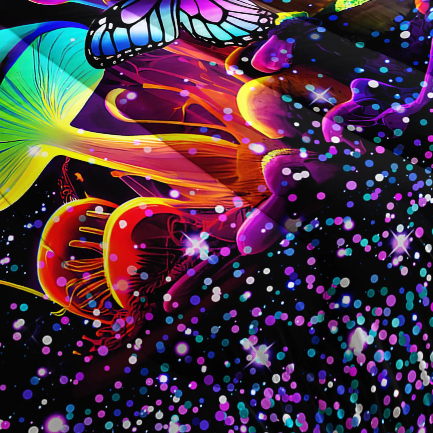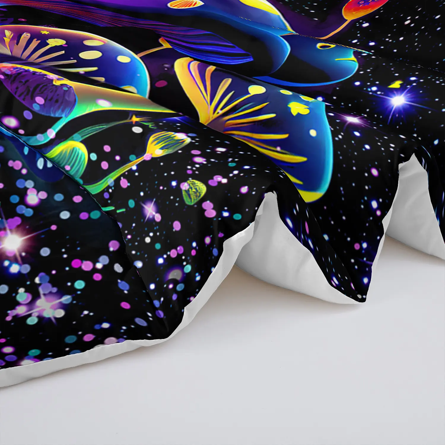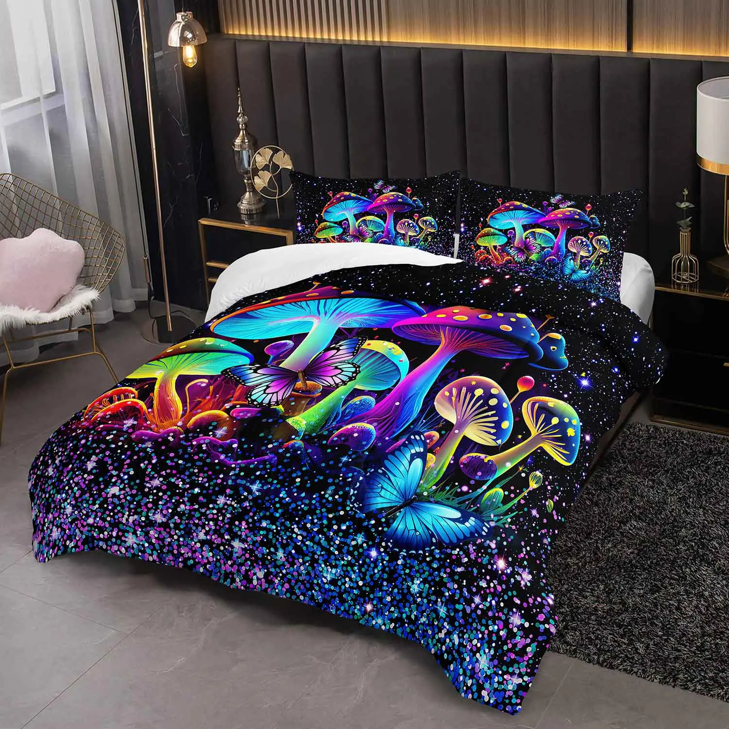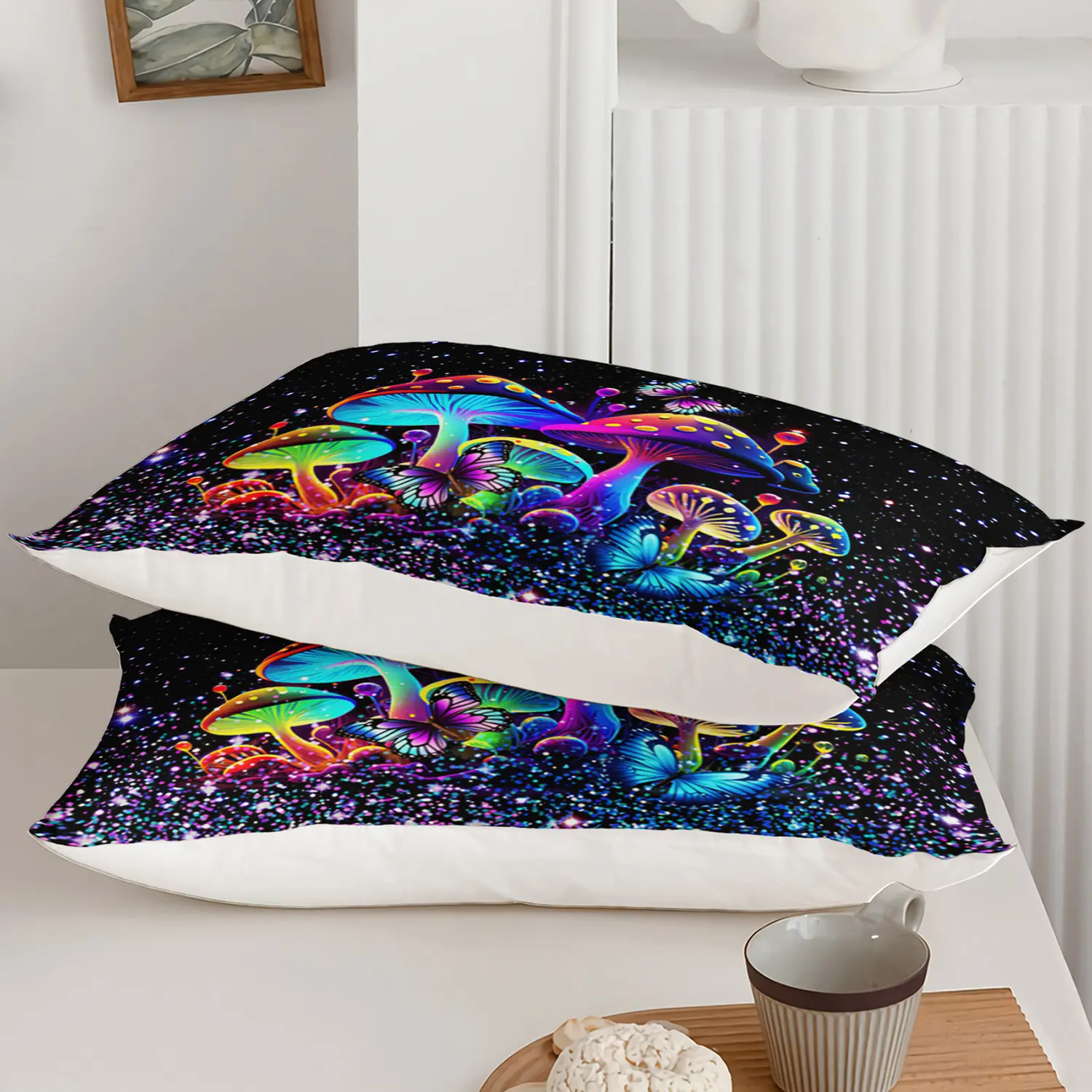 3pcs Mushroom Comforter Set, Fantasy Duvet Set for Girls and Adults Bedroom or Guest Room Decor, Lightweight Soft All Seasons Comforter Machine Washable Microfiber Quilt with 2 Pillowcases, Gifts for the Family