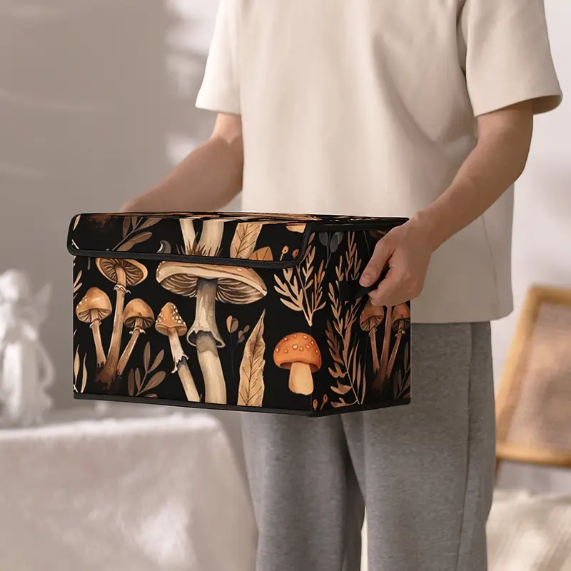 ăCute Designă: The mushroom pattern adds a playful touch, making the storage box appealing for kidsâ rooms and playful dĂŠcor.