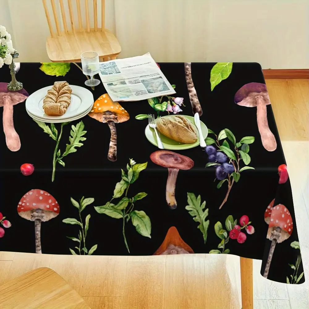1 Mushroom Patterned Tablecloth with Forest Mushrooms, Berries, Grass, and Wildflowers -100% Polyester Fiber Rectangular Table Cover, Suitable for Kitchen, Dining, Party Decoration, Outdoor Dining Table, Kitchen Table Cover | Mechanical Textile