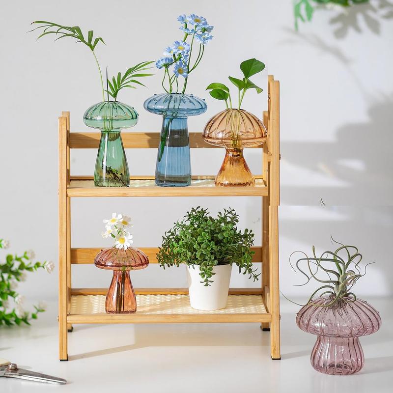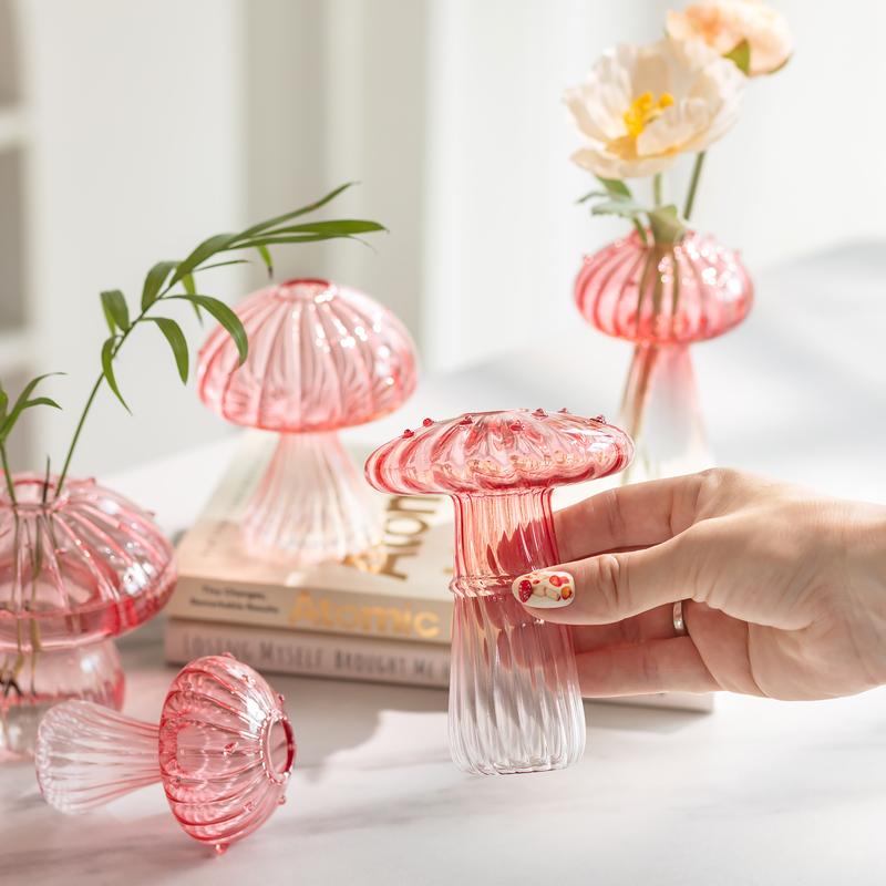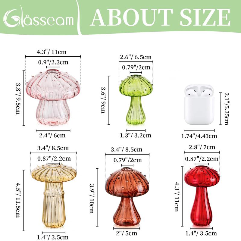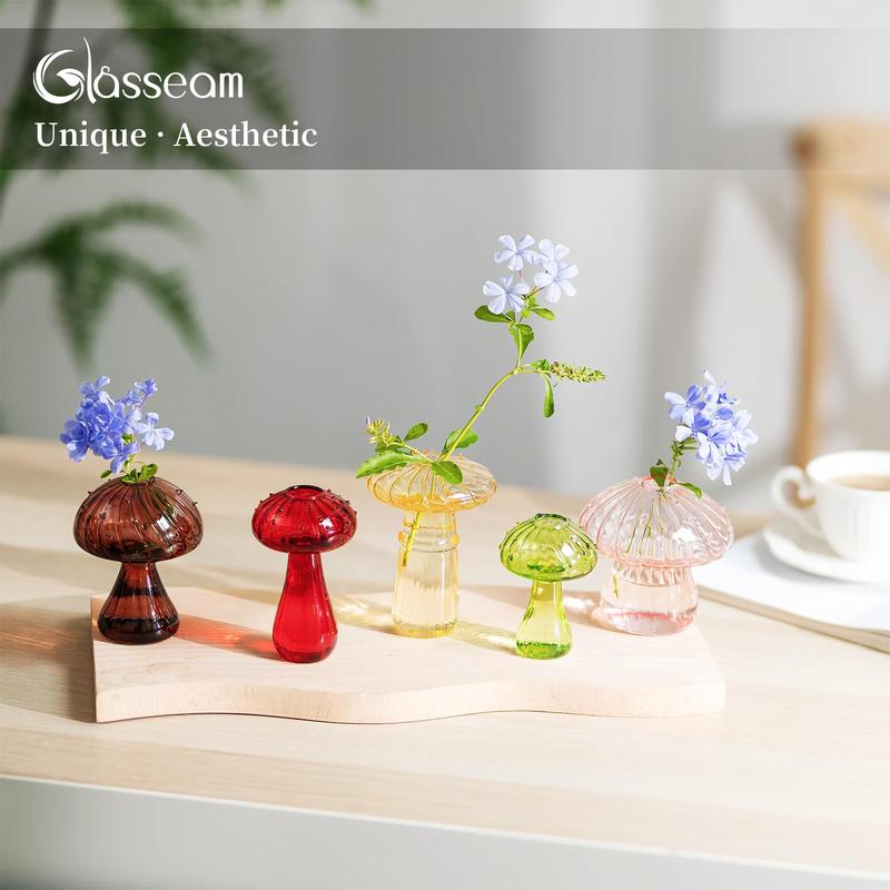 ·Assorted Lovely Mushroom Vases: These mini vases with varied mushroom shapes, sizes and colors give an eclectic and natural feel, add a cute and cool charm to any room, and bring a warm tone when light is shining through. They are chic enough to appreciate on their own, and simultaneously highlight the unique beauty of your plants when paired with flowers.