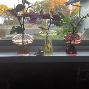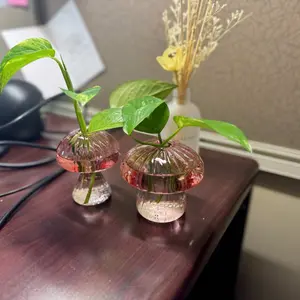 ·3 Major Upgrade With Higher Quality: 1. The opening of these small vases have been improved to one bigger hole from the original four smaller holes, making the mini vase be able to hold more small stem flowers and be more stable. 2. The base of the floral vase are wider than normal glass mushroom vase for higher stability. 3. Handmade by thicker high borosilicate glass, these small flower vases have more smooth shapes and higher transparency.