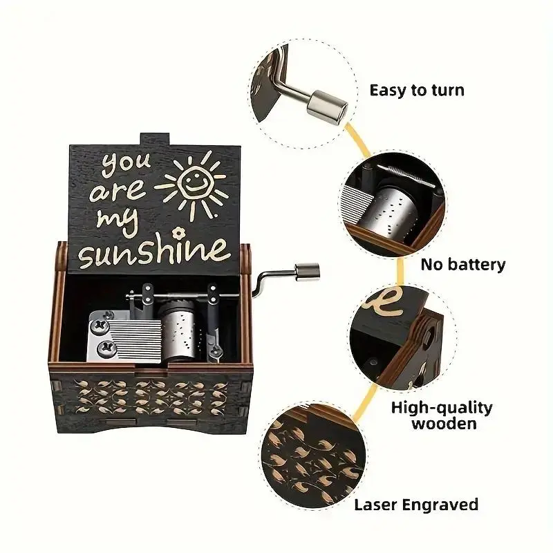 It’s adorable! It’s just as it looks and sounds and I love it! I got it for my daughter whom I’ve called “My Sunshine” for years now, however what this mom didn’t know, is that the same song is used in the movie Annabelle and it completely creeps my daughter out! Loves the box, hates the song lol!
