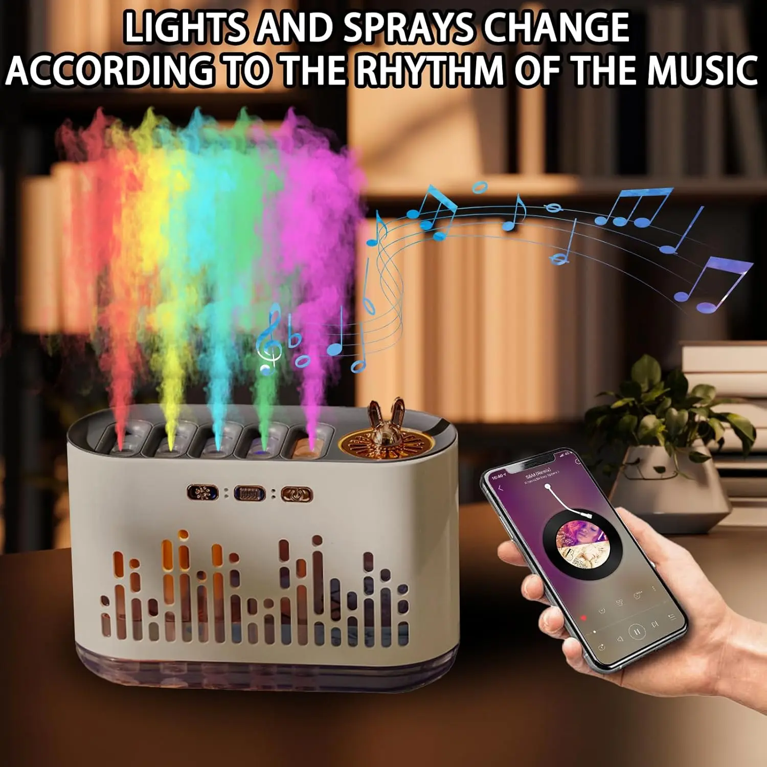 Music Sensor Humidifier Diffuser with Colored Flame and Sound Spray, 700ml, USB Powered Humidifier, with Aromatherapy Essential Oils, 7-Color LED Auto-Off, Timer, for Bedroom, Home Office, Fragrance Machine