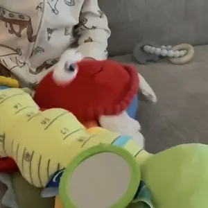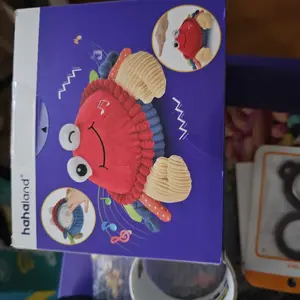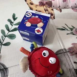 ·A vibrant plush crab toy stimulating sensory play. Features vibrant colors, various textures, and fun sounds. Encourages tactile exploration, auditory development, and visual stimulation. The crab's movements mimic a real crab, enticing babies to crawl and move, enhancing motor skills.