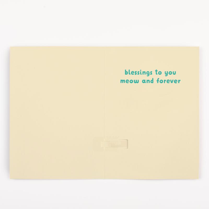 This musical Easter card plays cat meowing to Gregorian chant nonstop because some holidays deserve a truly unique soundtrack! Safe to sign before activation, but once opened, prepare for hours of unforgettable feline serenades. The purrfect way to make Easter memorable!
