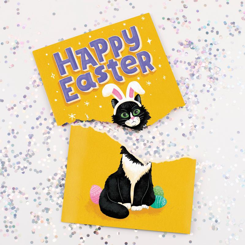 ·Cat lover gifts and pet themed Easter cards - Unique Easter present combining feline humor with traditional holiday celebration