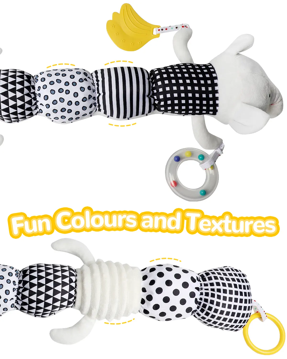 ·The toy includes a crinkle rattle, adding a fun element to playtime.