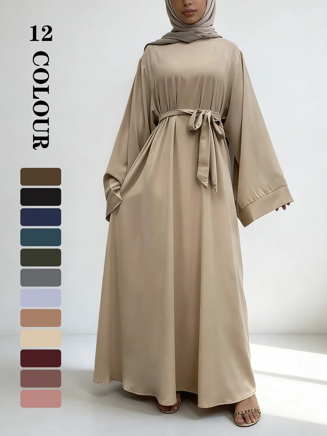 Muslim Modest Fashion Simple Nida High-Quality Long Sleeve Wide Sleeve Dress with Waist Belt, No Hijab Included, 12 Colors, 5 Sizes Available EID Ramadan Dress, Muslim Evening Dress #tiktokshop #ootd #fyp #womens #Dress