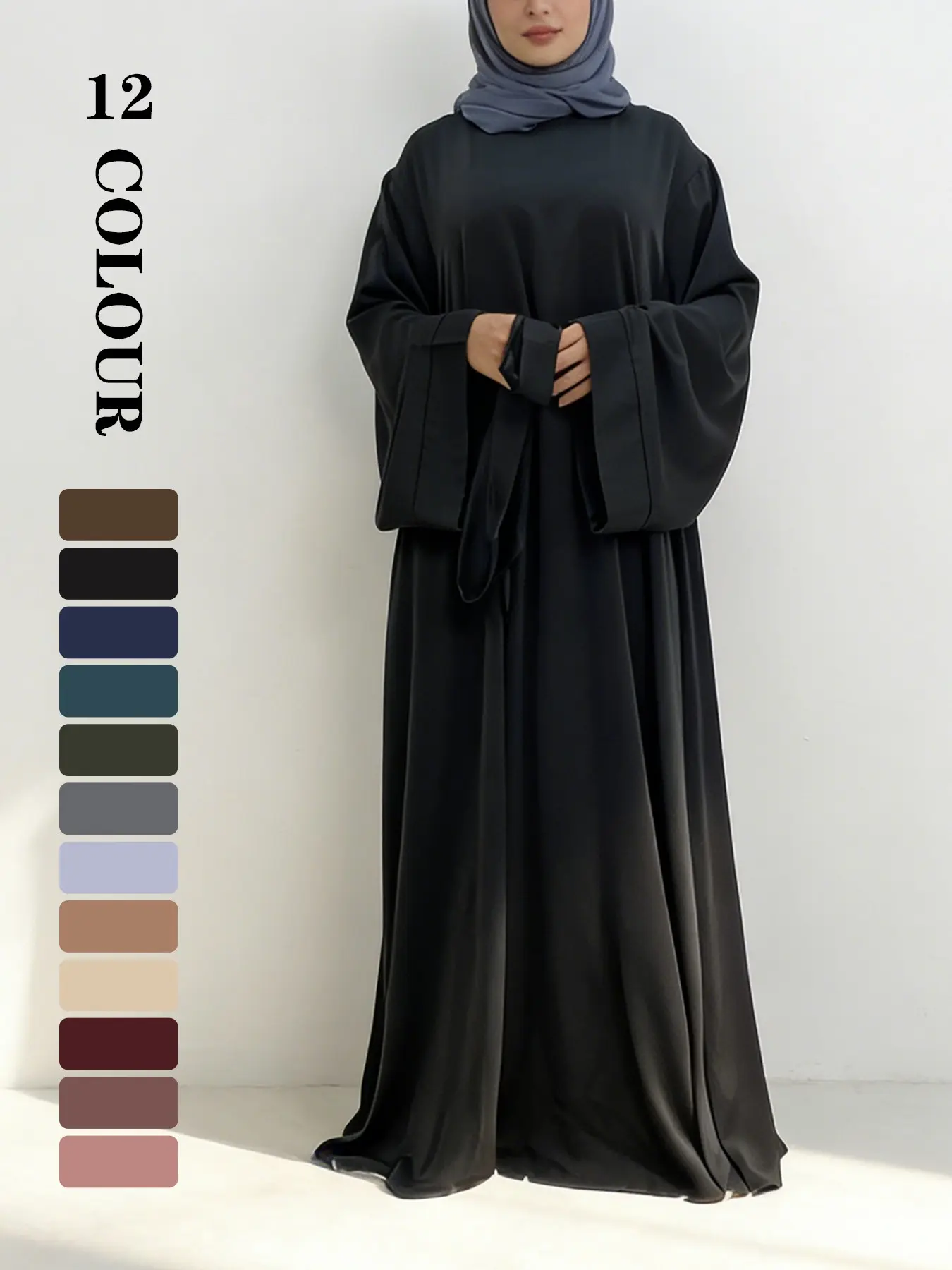 Muslim Modest Fashion Simple Nida High-Quality Long Sleeve Wide Sleeve Dress with Waist Belt, No Hijab Included, 12 Colors, 5 Sizes Available EID Ramadan Dress, Muslim Evening Dress#tiktokshop #women #ootd #fyp #dress