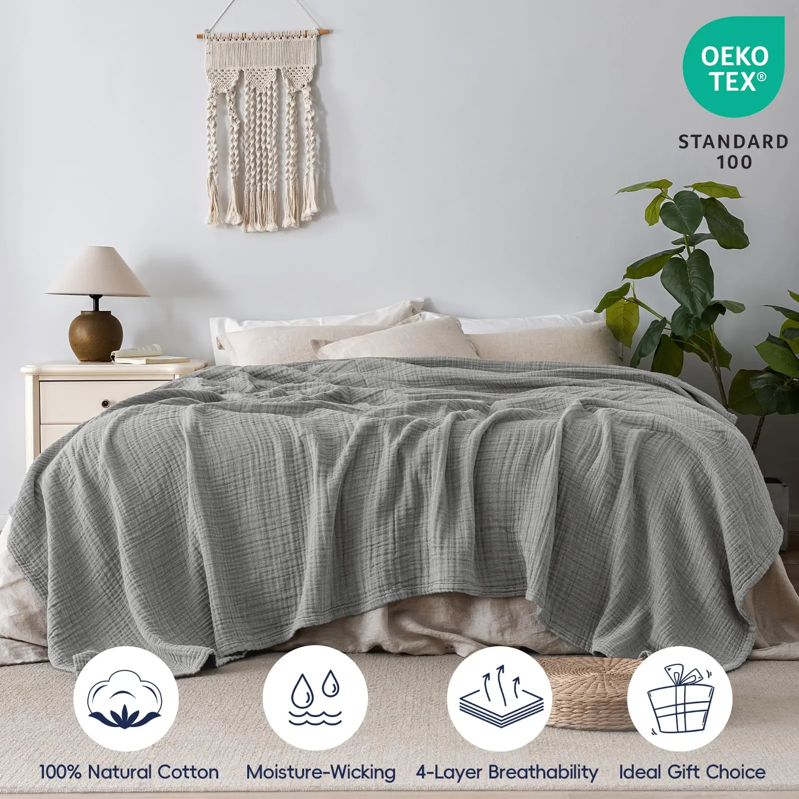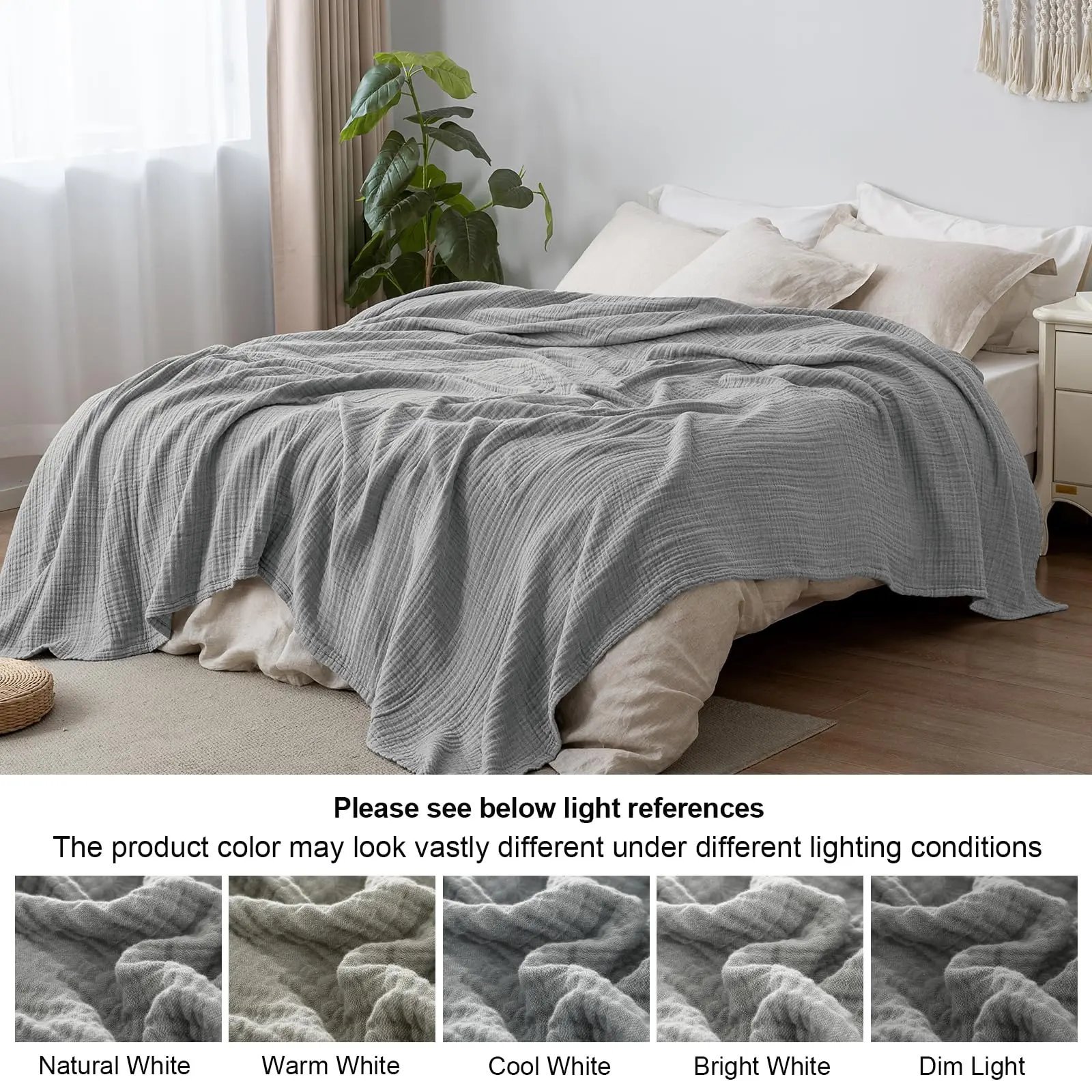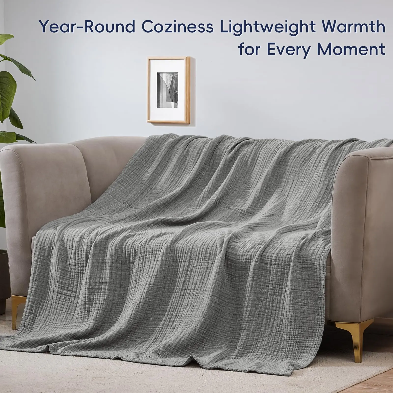 Year-Round Versatility & Multi-Functional: This muslin blanket offers temperature-regulated comfort for all seasons and spaces. Use it as a light cover in spring/summer or add it to heavy comforters in fall/winter. Available in various sizes, it easily transitions from bedspread to couch throw, picnic blanket, or travel companion—perfect for movie nights, camping trips, or office naps.