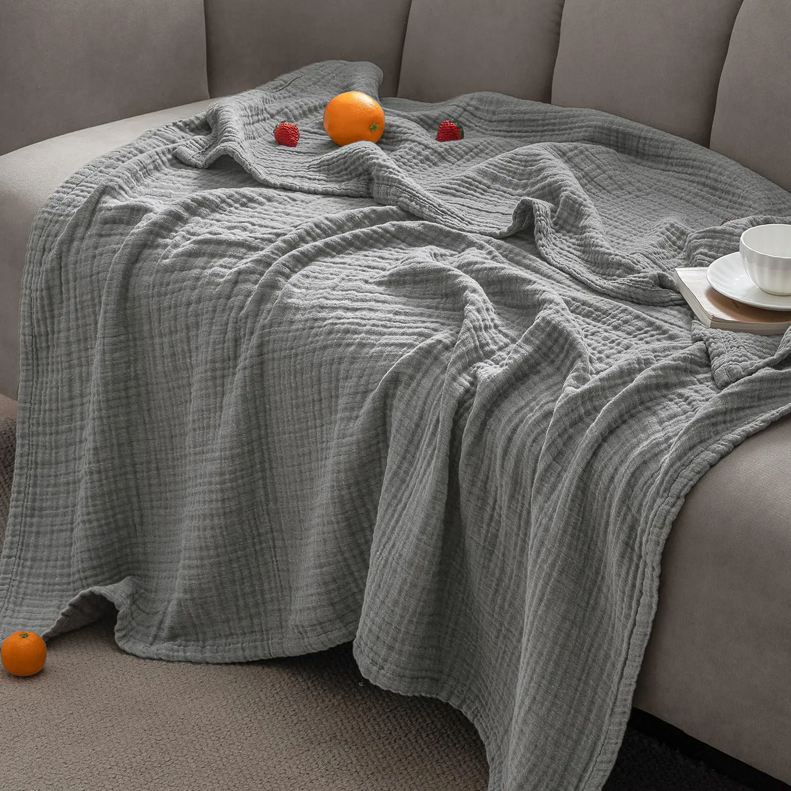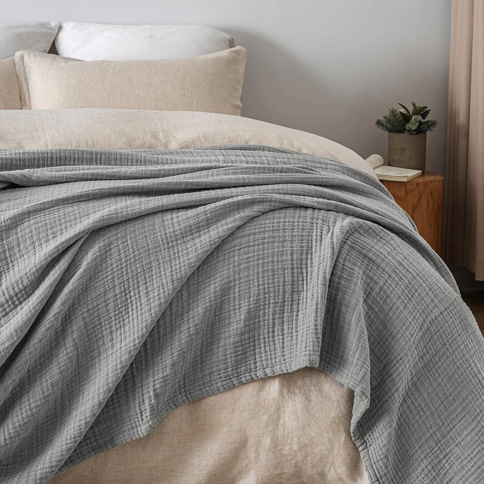 Chic Home Accent: Embrace functional minimalism with solid-hued gauze blankets. Crafted from 100% natural cotton, these blankets feature an understated texture with soft creases and woven whispers, perfectly complementing nature-inspired hues. Drape them over your sofas, beds, or chairs to achieve effortless elegance.