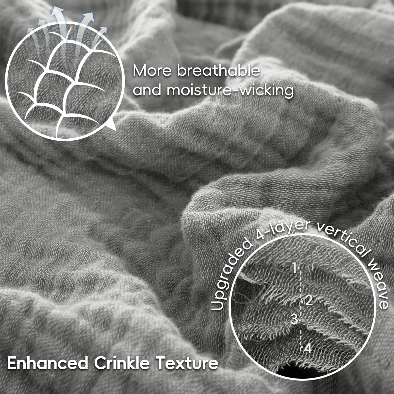 Stay Fresh & Dry All Night: Upgraded vertical weave design and the 4-layer specialized weaving technique boost airflow and moisture management, while the refined crinkled texture delivers lightweight breathability and rapid moisture absorption keeping you cool and sweat-free even on hot nights. Perfect for maintaining a comfortable body temperature, it's your go-to for restful sleep.