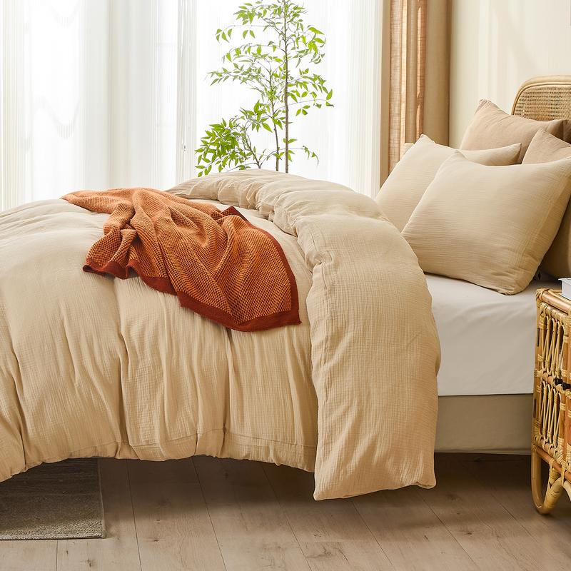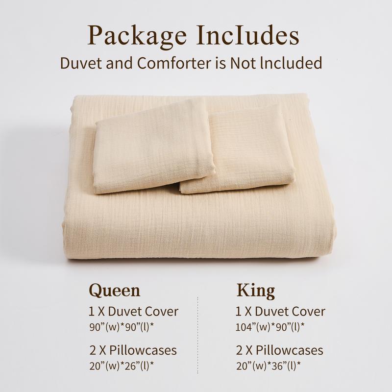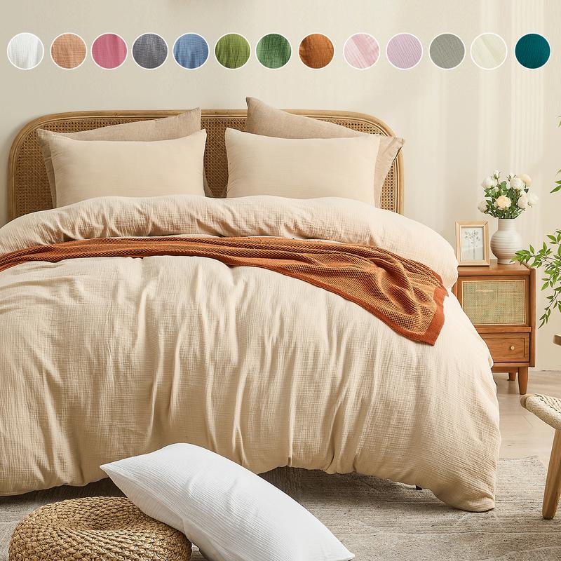 ·Breathe Better, Sleep Dry:Bedlifes Muslin Duvet Cover Featuring an innovative gauze weave, the duvet cover wicks moisture 30% faster than regular cotton. Its temperature-regulating properties keep you cool in summer and cozy in winter, ensuring year-round comfort and a restful night's sleep.