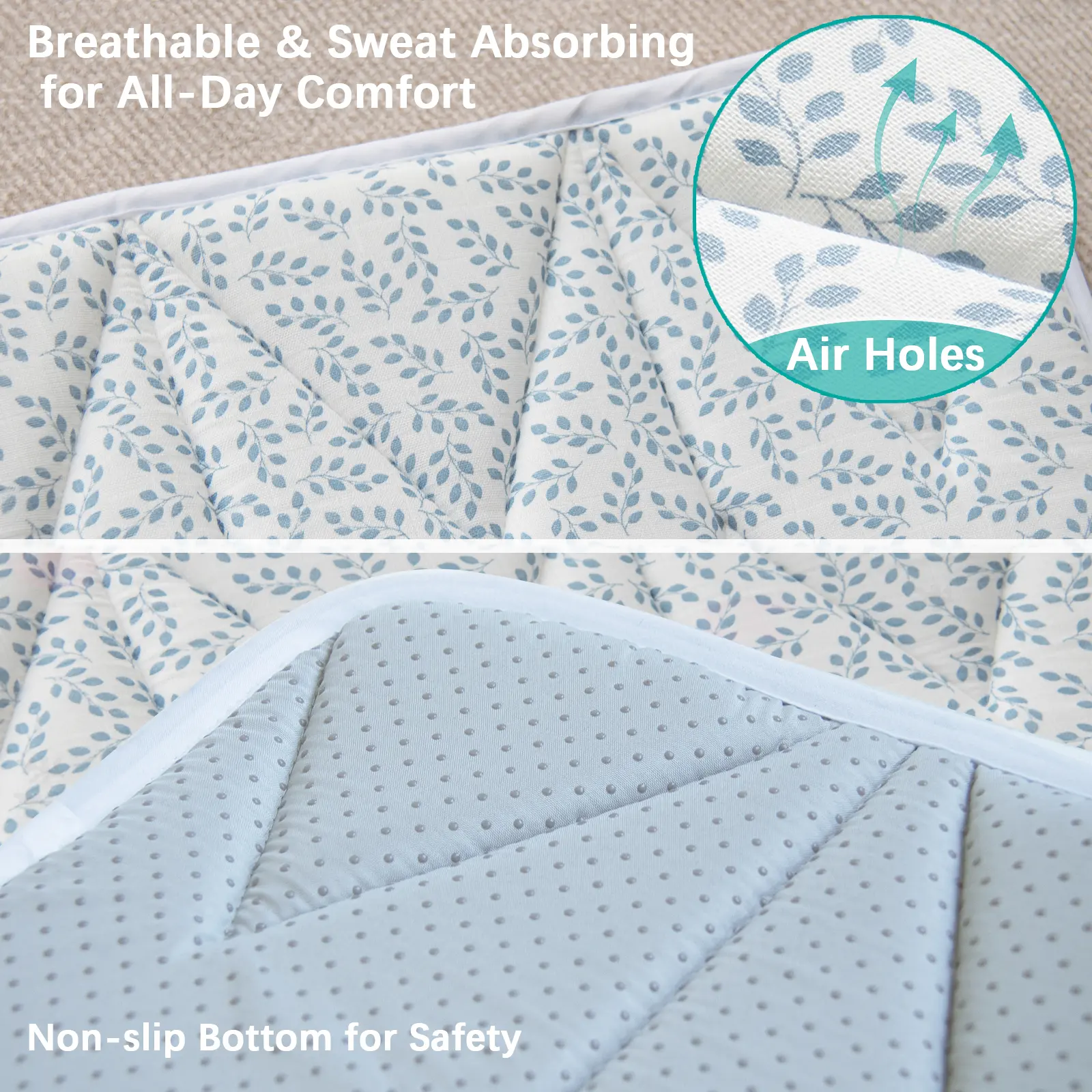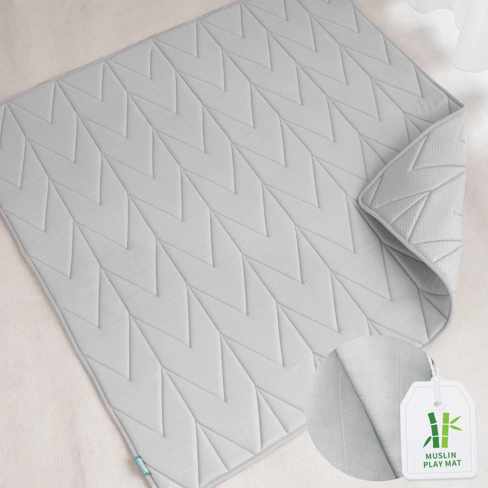 Perfect Summer Play Mat - The breathable and absorbent bamboo muslin could prevent overheating, absorb moisture, and regulate temperature. Ultimate choice for hot days.