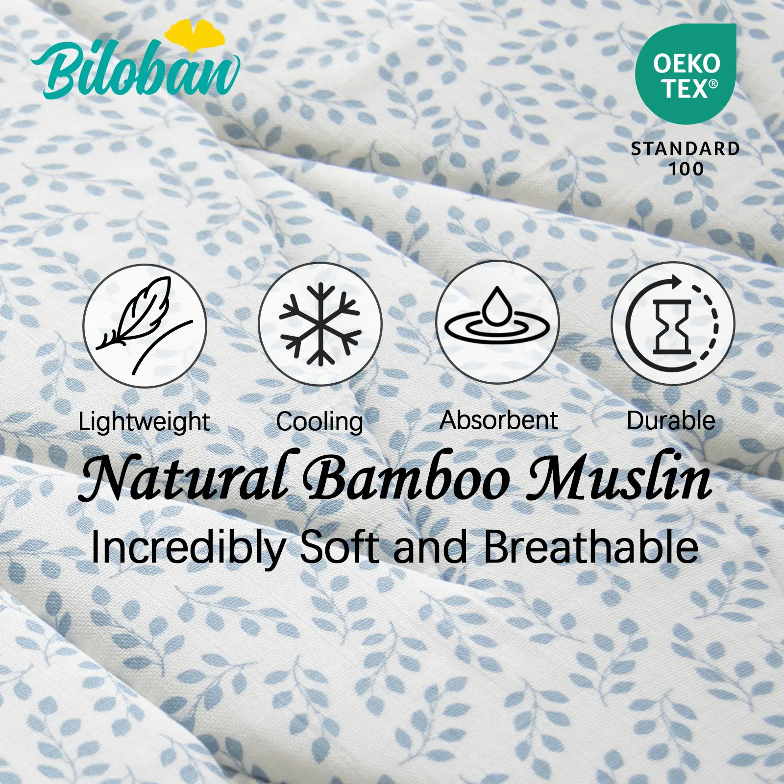 Premium Bamboo Muslin Fabric - 55% natural bamboo. Incredibly soft and breathable, skin-friendly and lightweight, cooling and absorbent. Durable for your little one's comfort and your peace of mind!