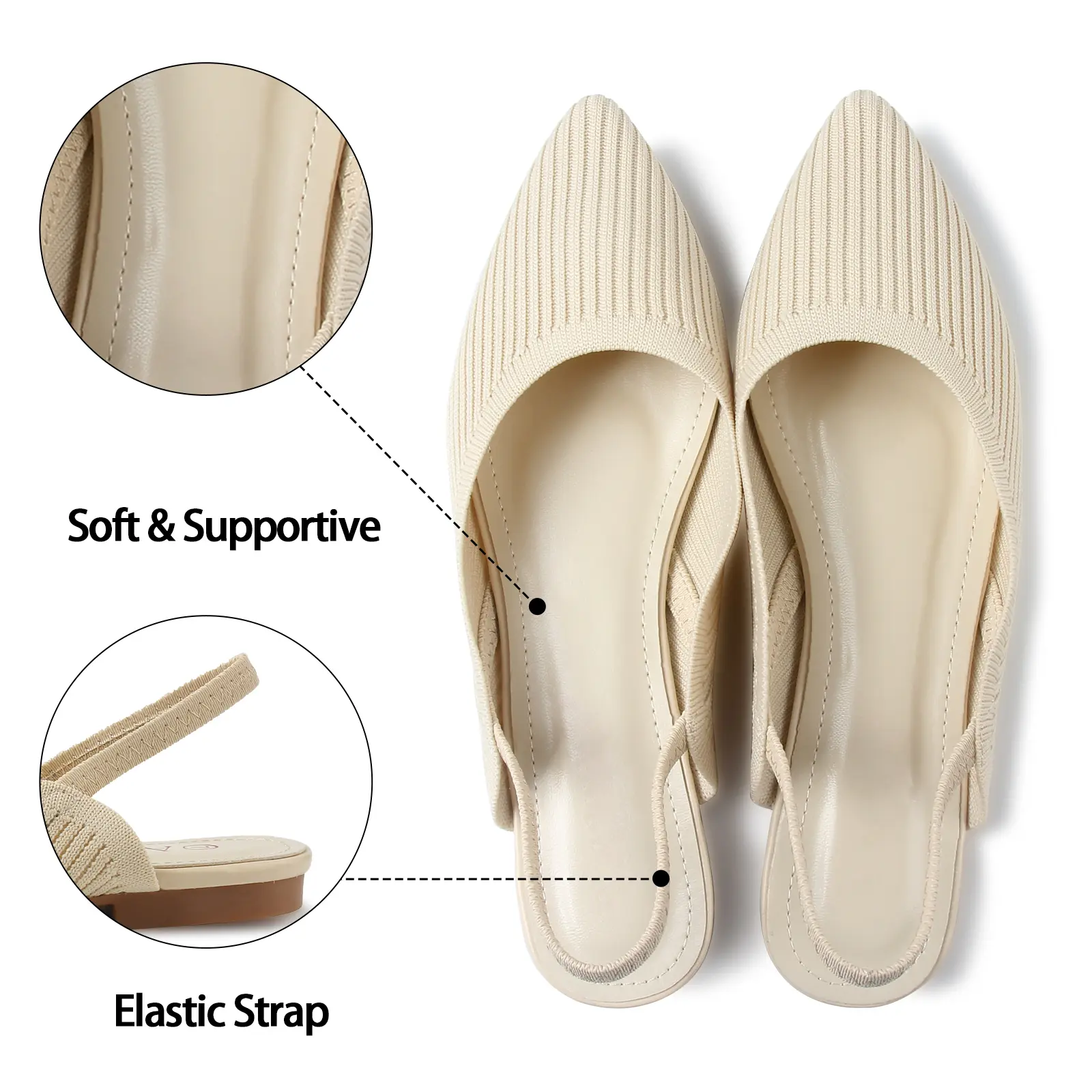 The unique slingback design adds a modern edge while keeping the shoes secure around your ankle. It combines style and function, preventing slippage and ensuring a stable fit. Perfect for days when you want to look elegant without sacrificing comfort.