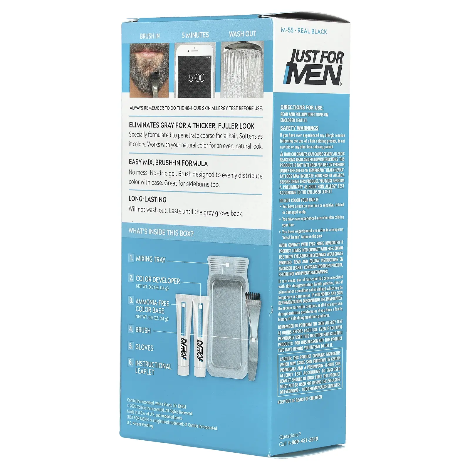 Just for Men Mustache & Beard, Easy Brush-In Color, M-55 Real Black, 1 Multiple Application Kit
