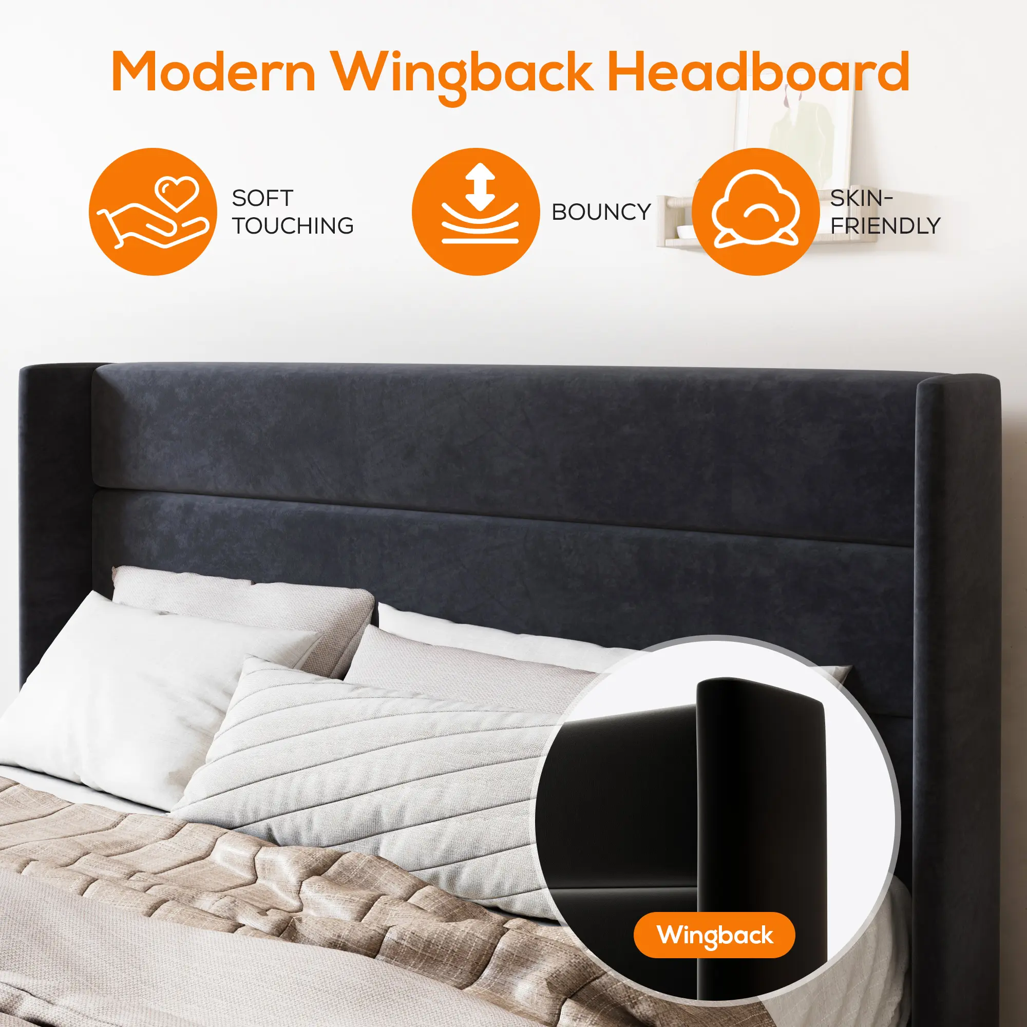 Choose the sleek 3-Panel Simple headboard for a modern look or the Diamond Tufted design for classic elegance, both offering plush comfort to lean against.