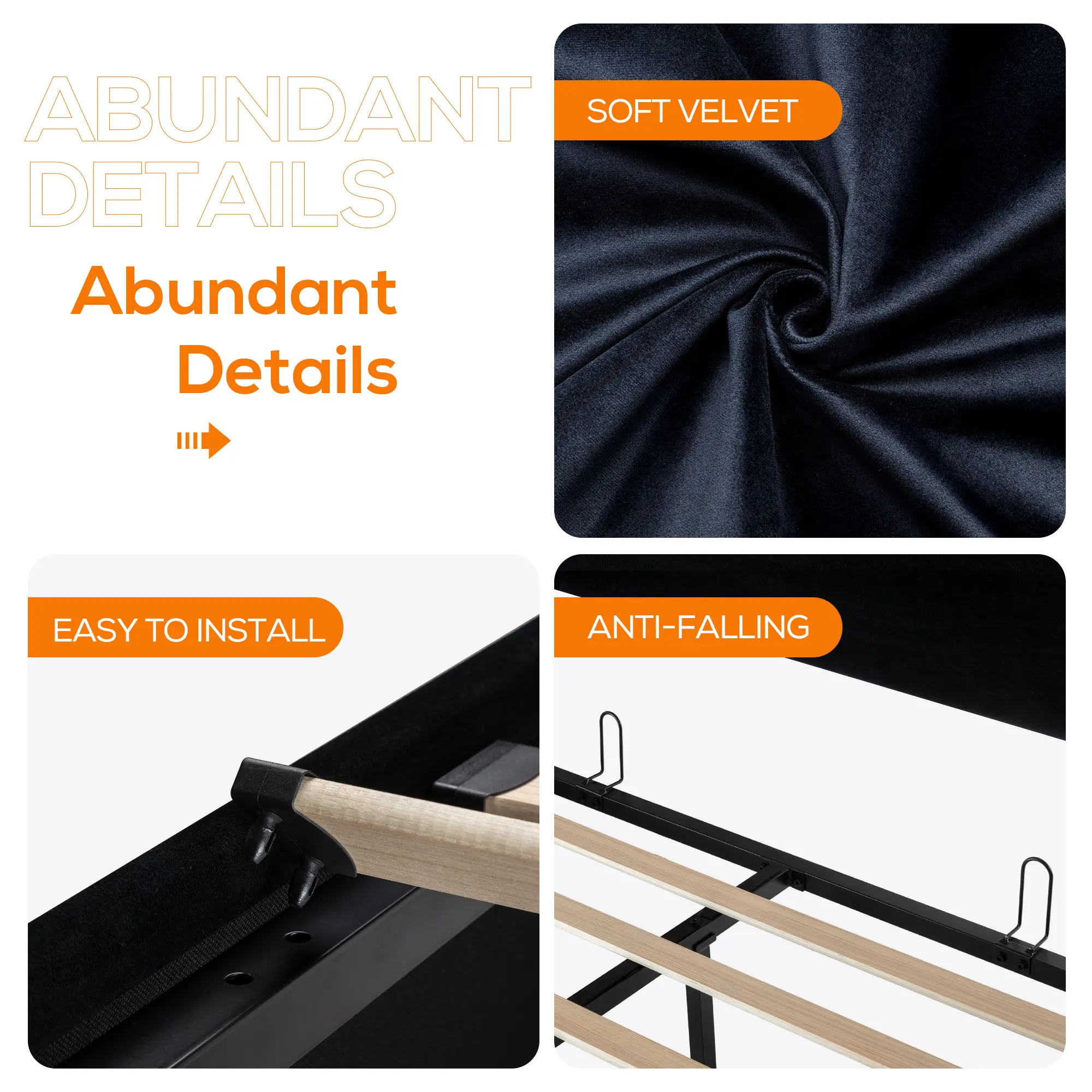 The easy-lift hydraulic system opens effortlessly, while thick foam pads on the metal frame eliminate squeaks, ensuring peaceful and undisturbed rest.