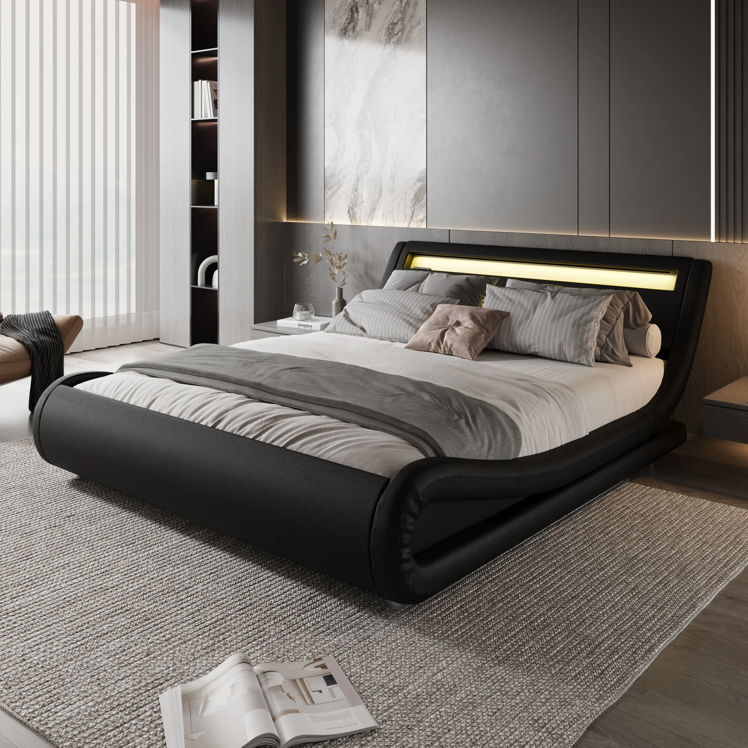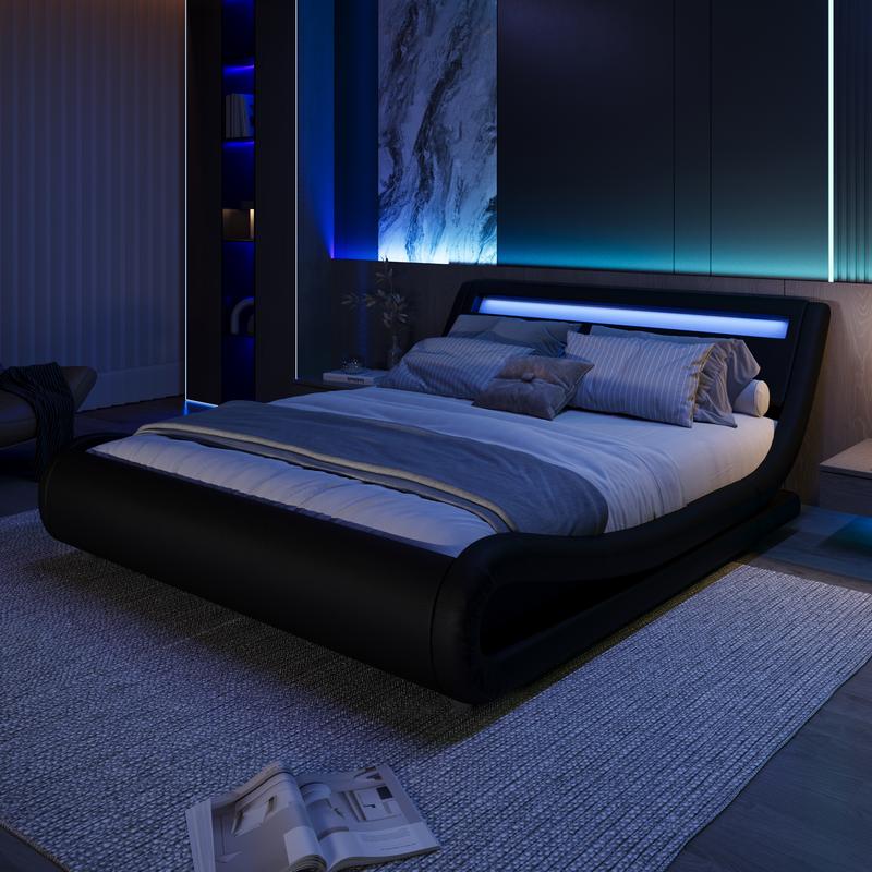 The modern sleigh-style platform features a low-profile silhouette that effortlessly complements contemporary interiors. Its refined design adds a sophisticated touch to any bedroom, making it a stylish centerpiece for your space.