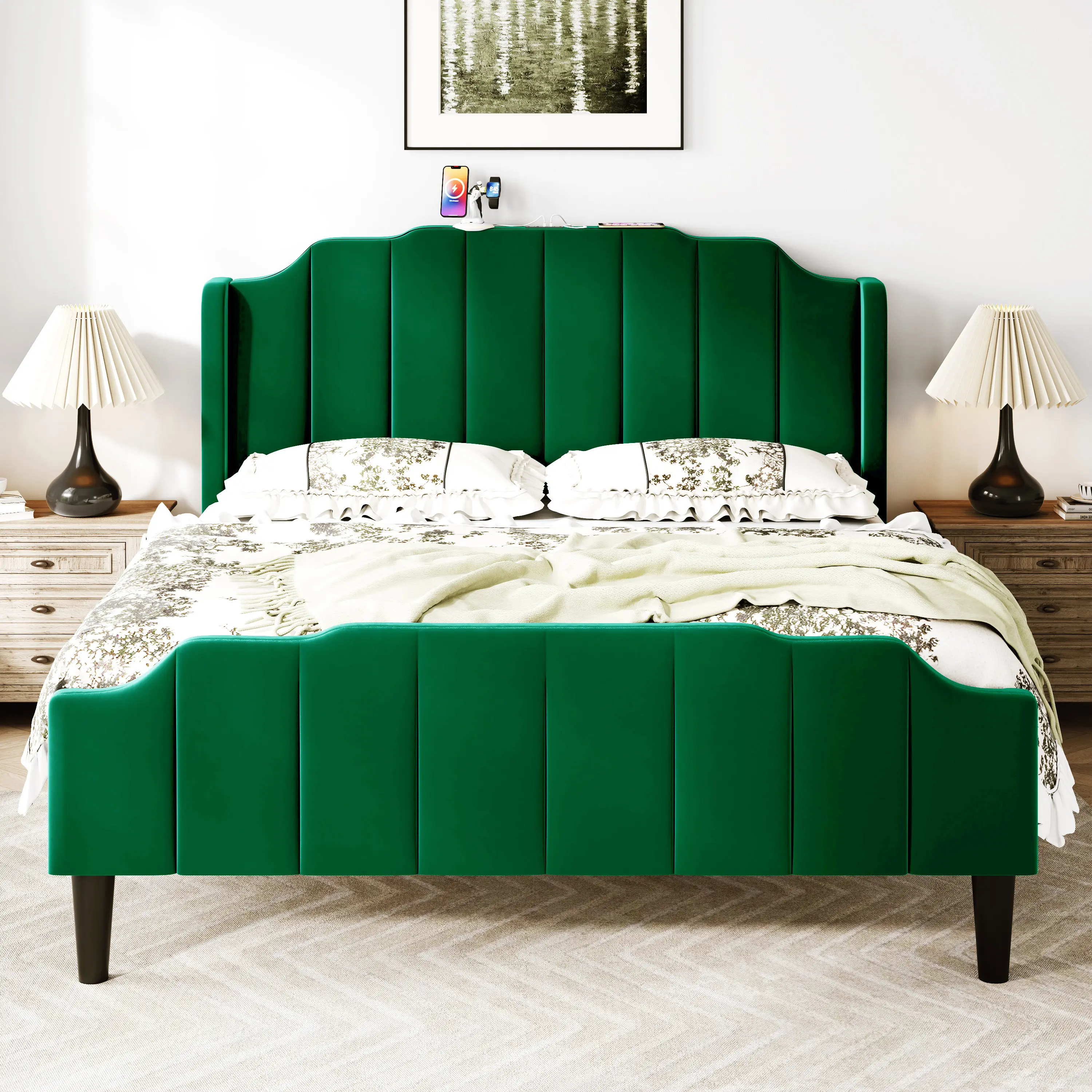 Forest Green, Queen Frame[No-Mattress]